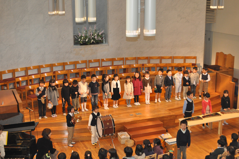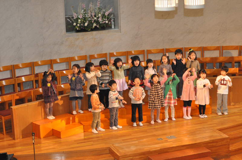めぐみ幼稚園の子どもたちは、神様に守られて、こんなに大きくなりました。先日、保護者の方々も見にいらして、感謝会を開きました。