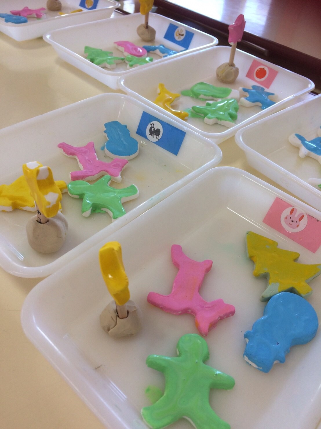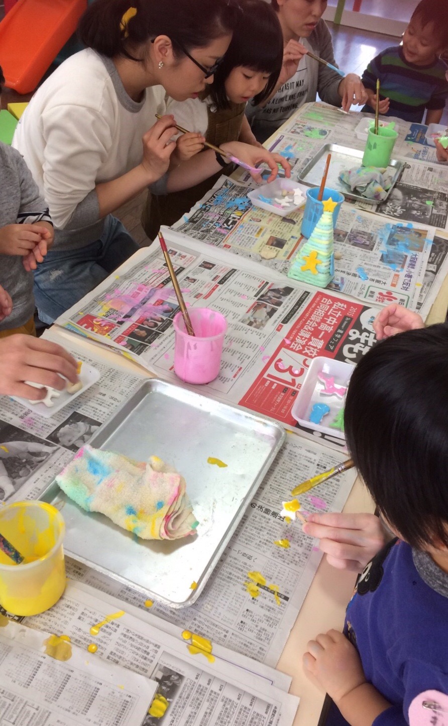 クリスマスツリーの製作も始まりました。オーナメントに、好きな色の絵の具を選んで塗りました。かわいい飾りが出来ました。