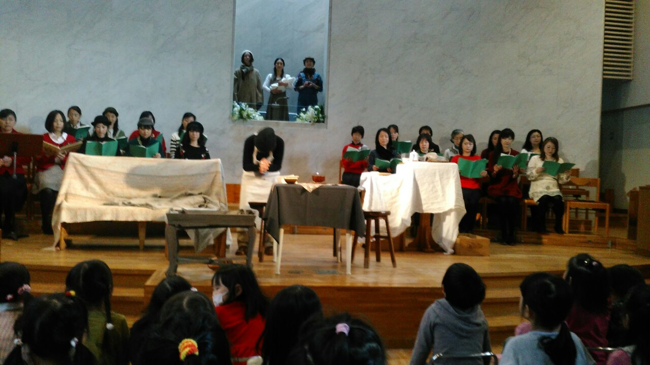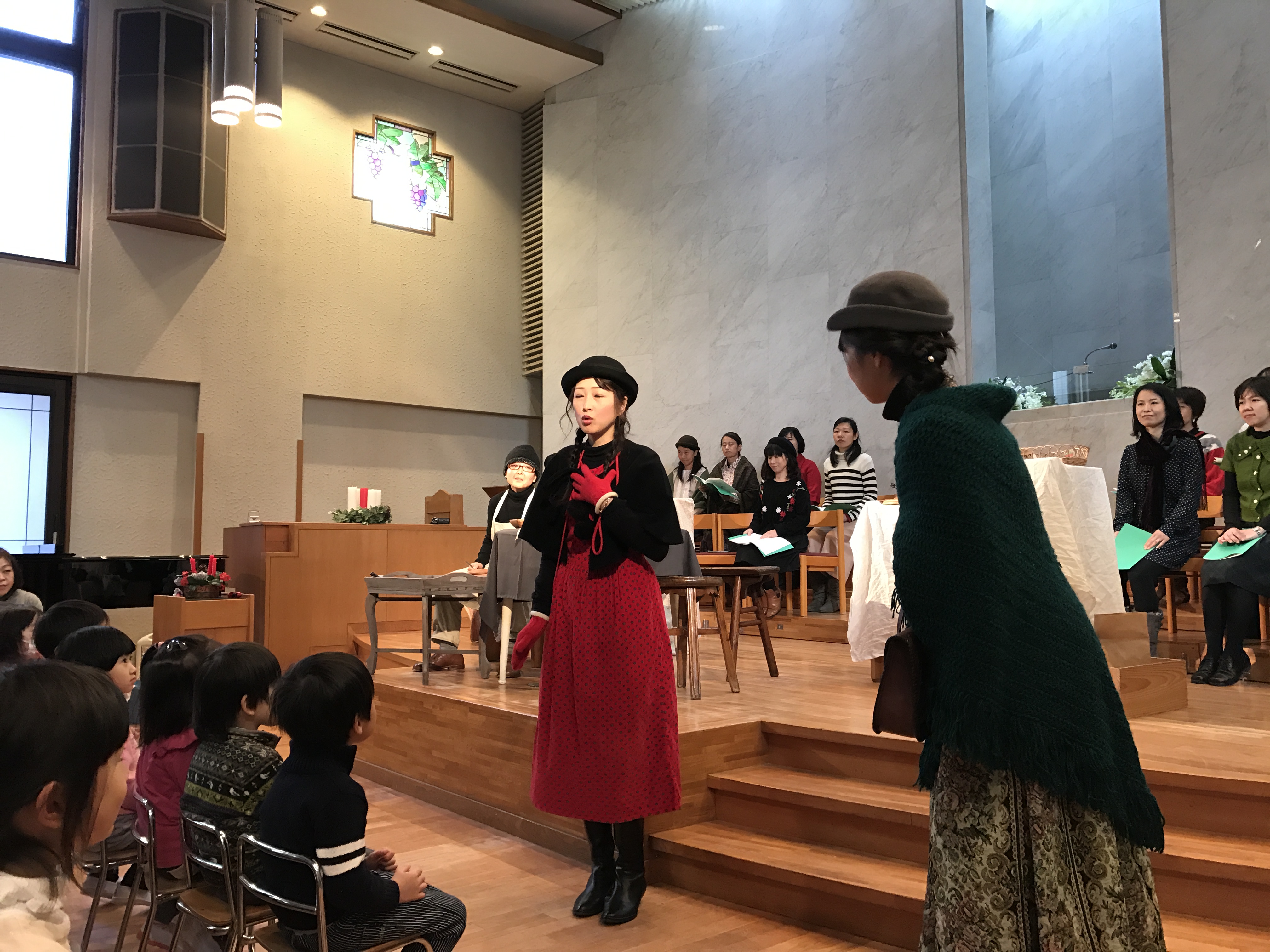 今日の水曜礼拝はスペシャルで、グレースアンサンブルのお母様方の劇『靴屋のマルチン』。