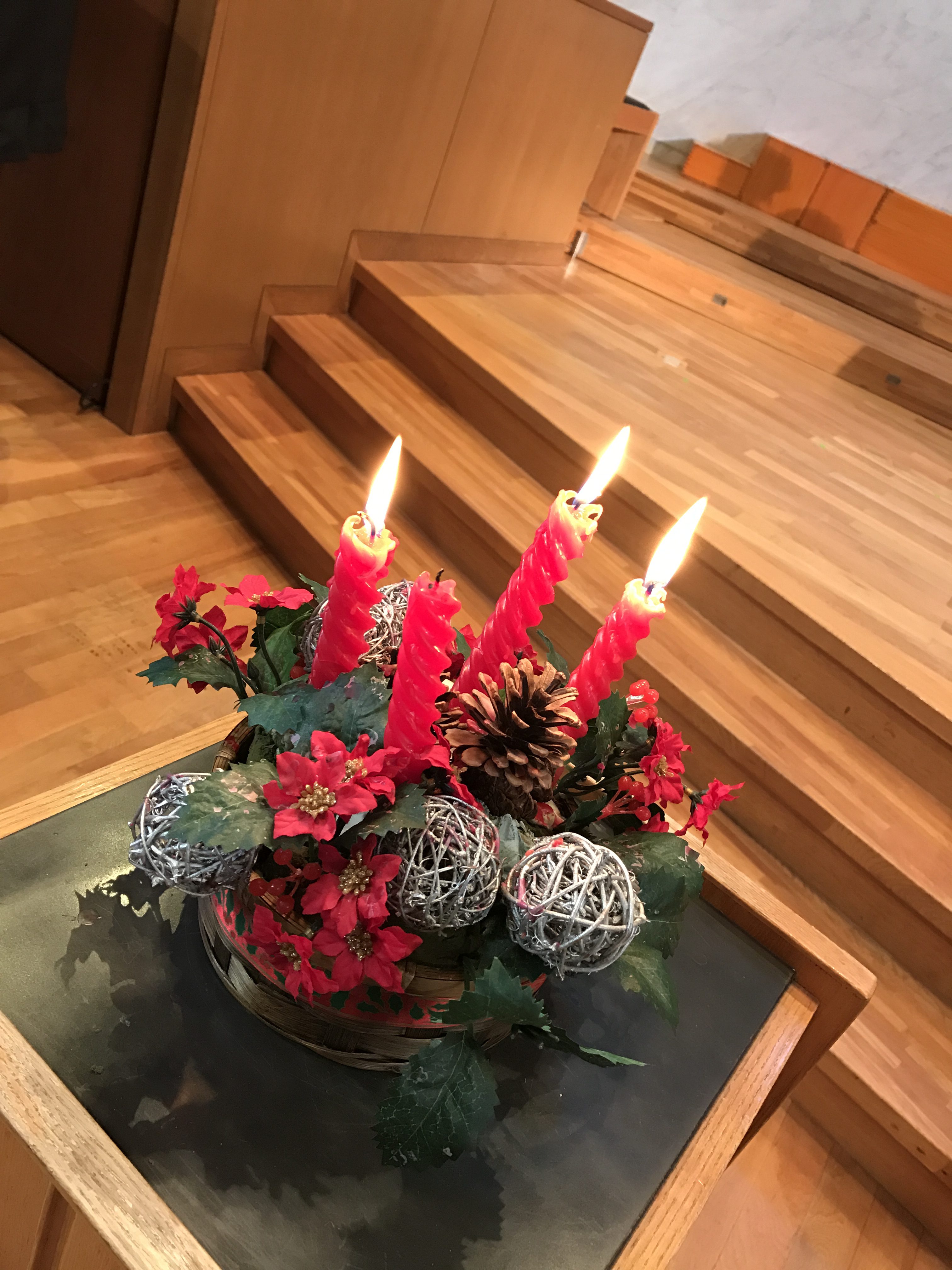 アドベントクランツに三本目の灯りがつきました。いよいよ、来週がクリスマス礼拝です。