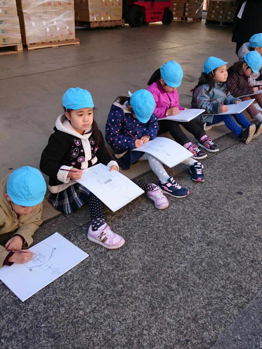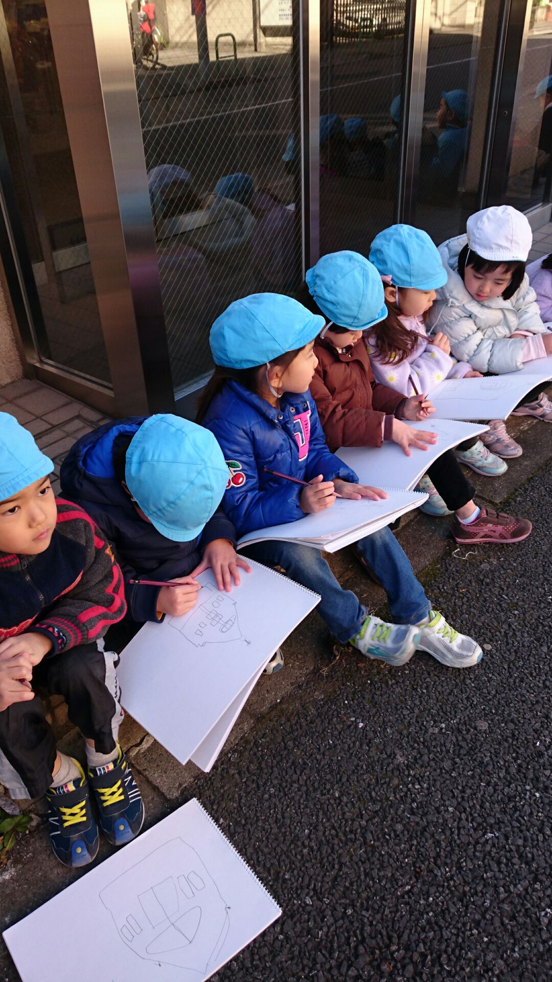 さくら組はお向かいの道路に行って教会の絵を描きました。