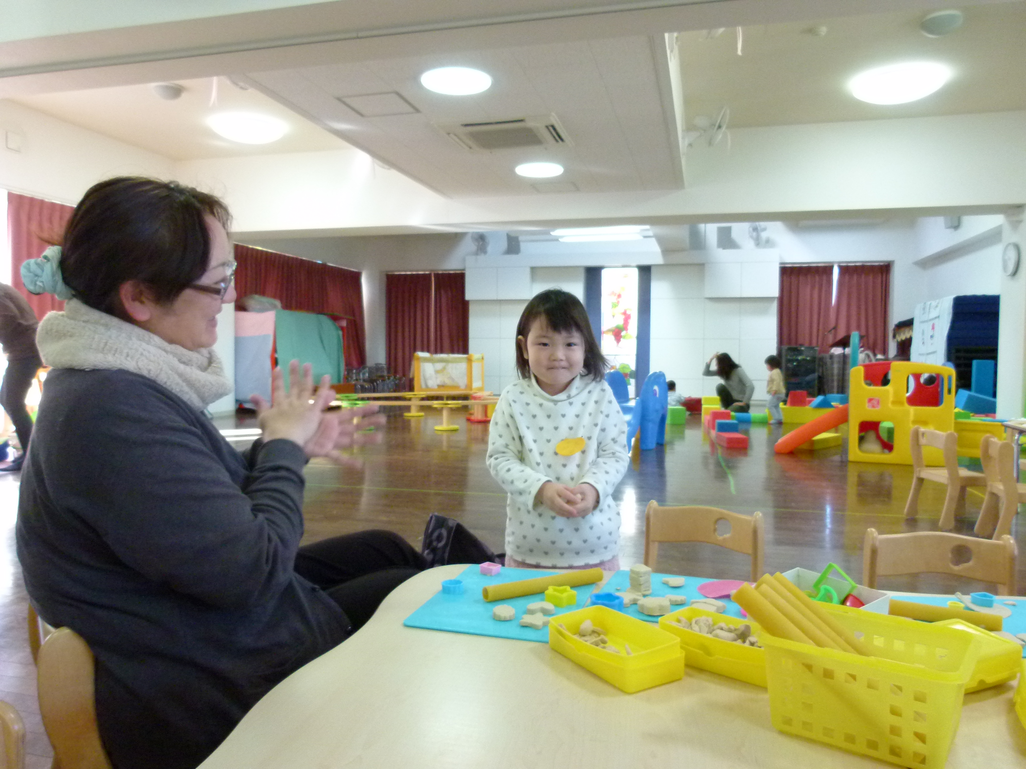 ホールでは、おもちゃを使って遊んだり、工作をしたり…お母さんやお友達と楽しい時間を過ごしています。