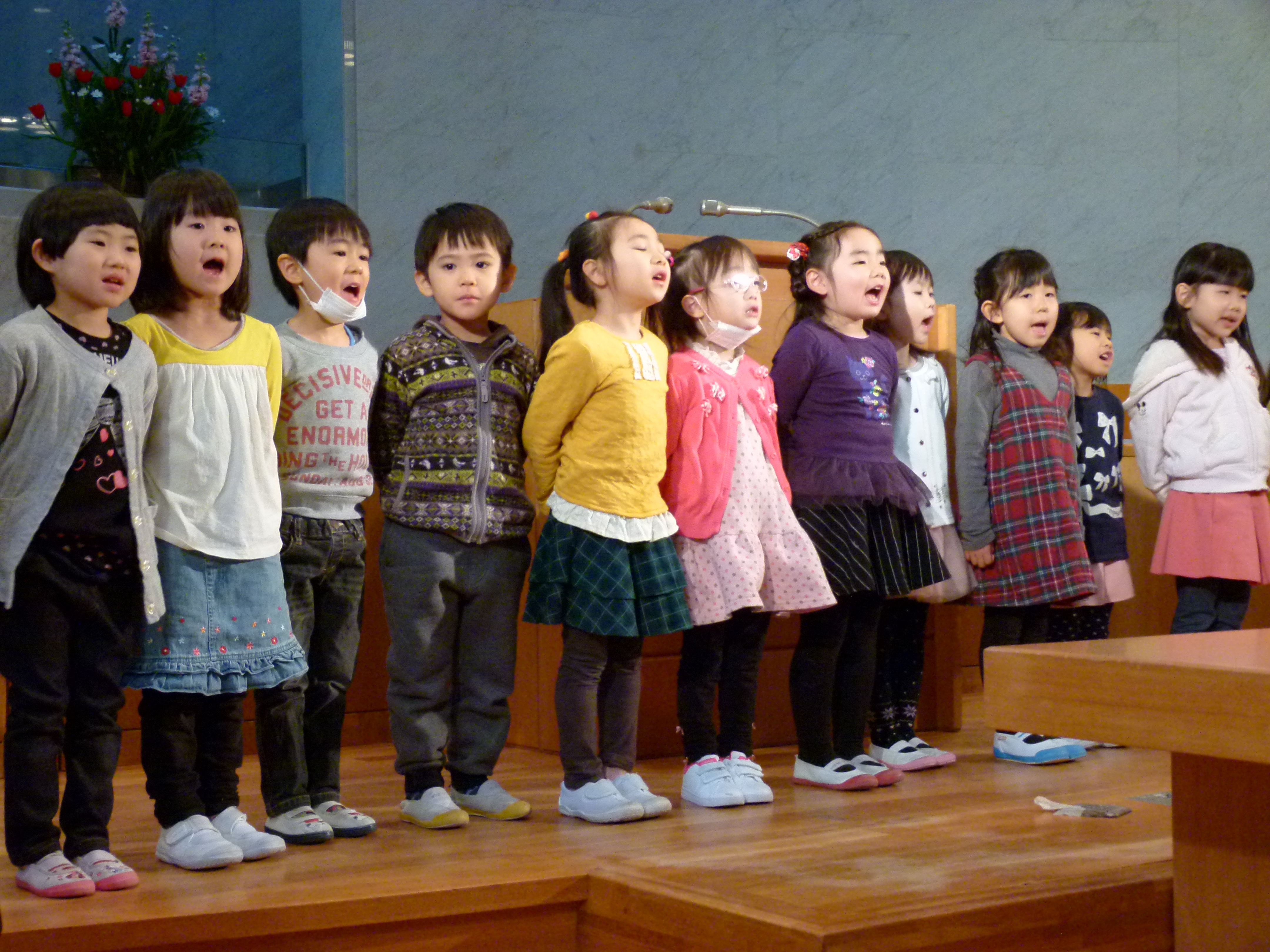 たんぽぽ組のお友だちがみんなで「渇きあえぐわが魂は」を韓国語で歌いました。