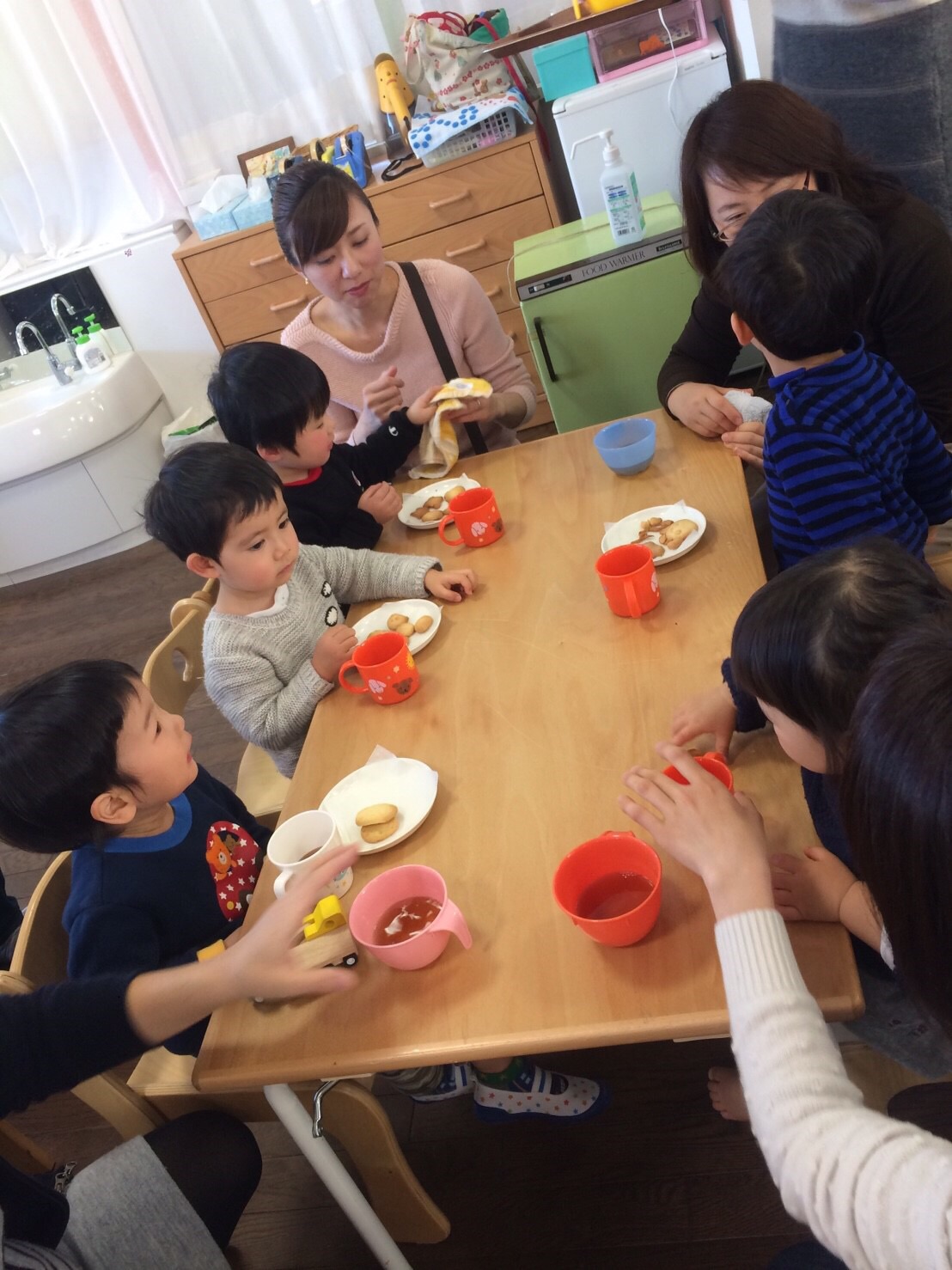おやつの時間、焼き上がったクッキーをみんなでいただきました。自分で作ったおやつはとても美味しかったようで、みんなニコニコしていました。