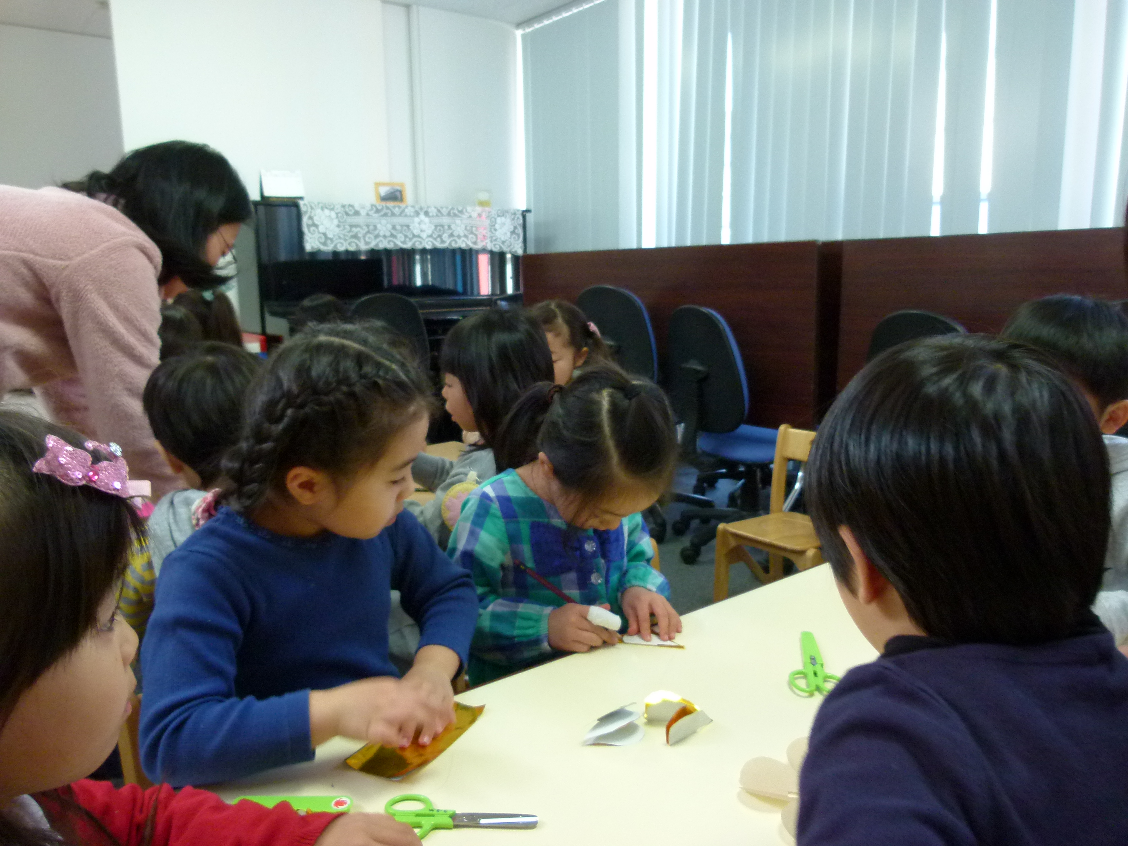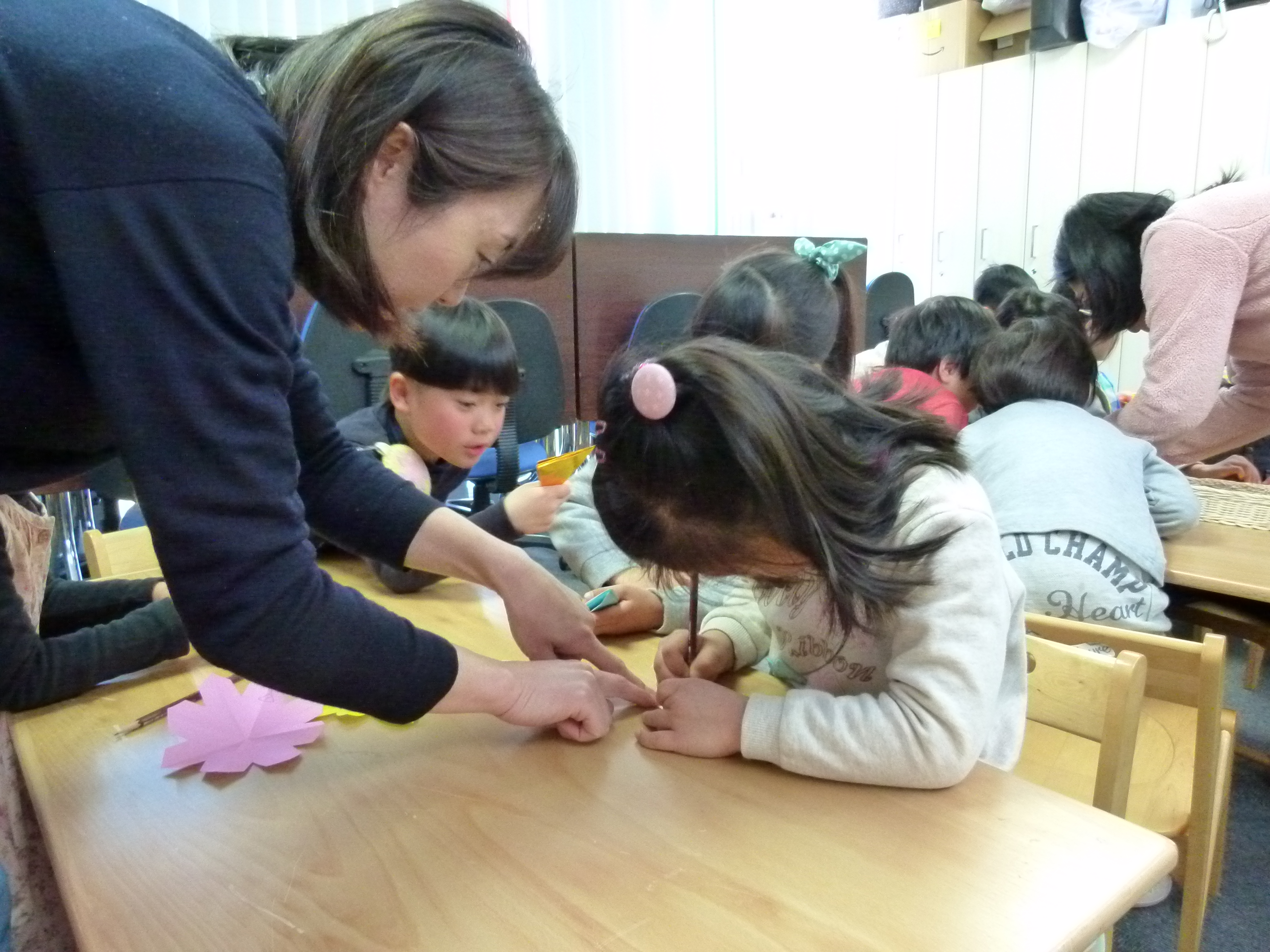 年長組のお母さん方からのプレゼントは茶道体験と切り紙でした。