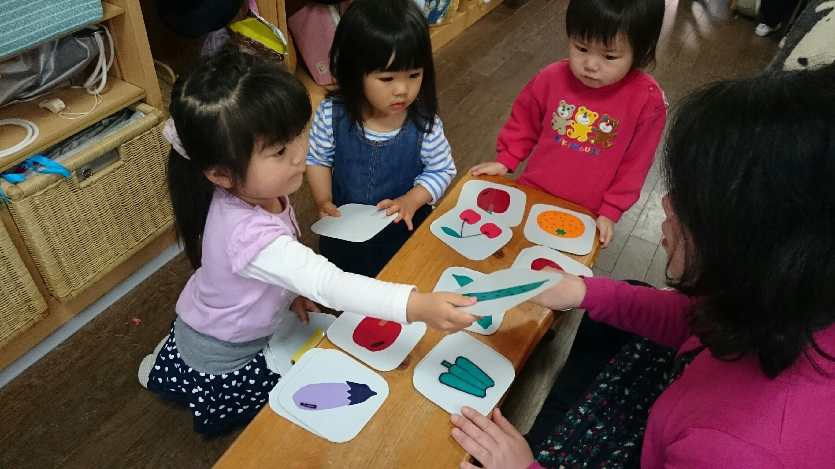 今日、もも組さんは朝からおうちの方と離れて、年少ゆり組さんへ遊びに行きました。