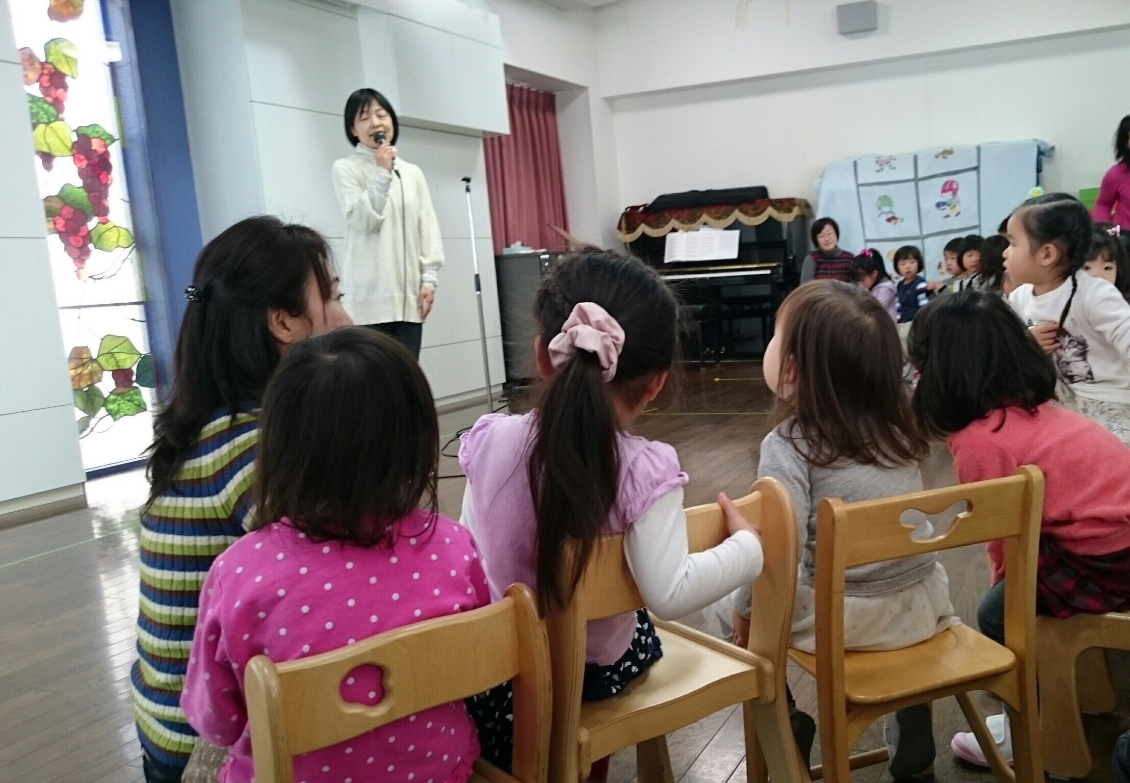 合同礼拝にも出席しました。幼稚園のお兄さん、お姉さんと、お祈りをしたり、讃美歌を歌ったり。主の祈りも聞きました。