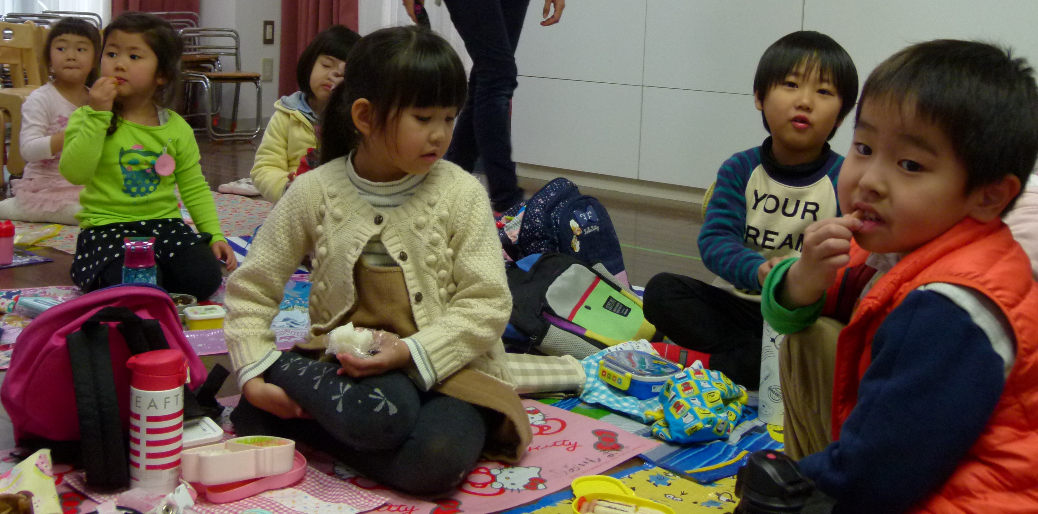 その代わりホールで園長先生と沢山ゲームをした後 、お弁当をグループに分かれて頂き、めぐみ幼稚園のお友だち全員で楽しい時間を過ごしました。昨日ゆりさんが作ってくれたクッキーも美味しかったです。