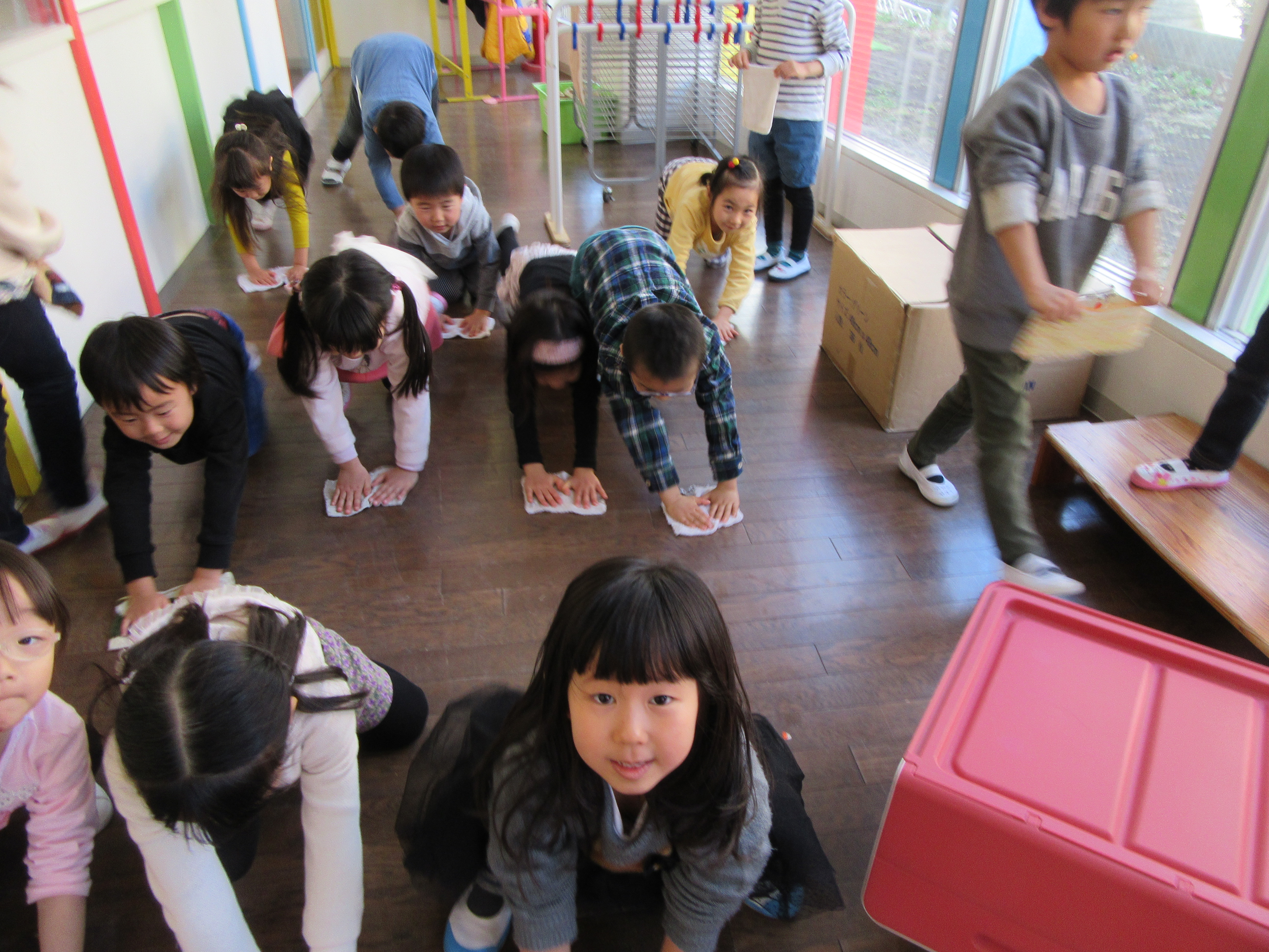 幼稚園の、大掃除をしました。