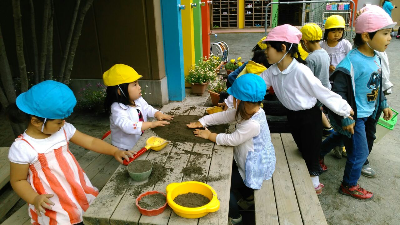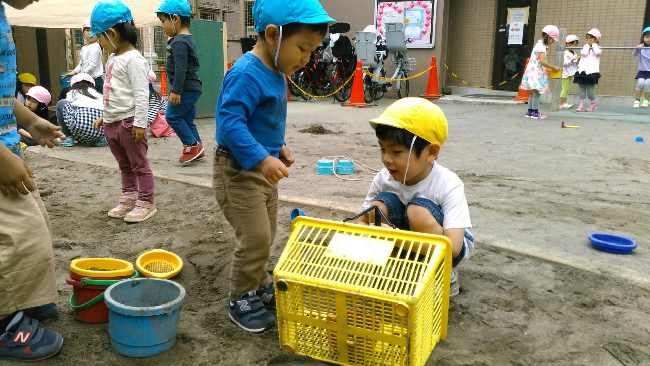 楽しい時間 今日のひとこま 2017.05.17 今日は、朝から3クラス一緒に園庭で遊び、体操をしました。 たんぽぽ組のお友だちは、ゆり組さんのお友だちの名前も覚えて、一緒にお砂遊びやだんご虫探しをしました。 優しくお話しをしたり、一緒に遊んでいる様子を見ると、お兄さん・お姉さんになった事を感じます。
