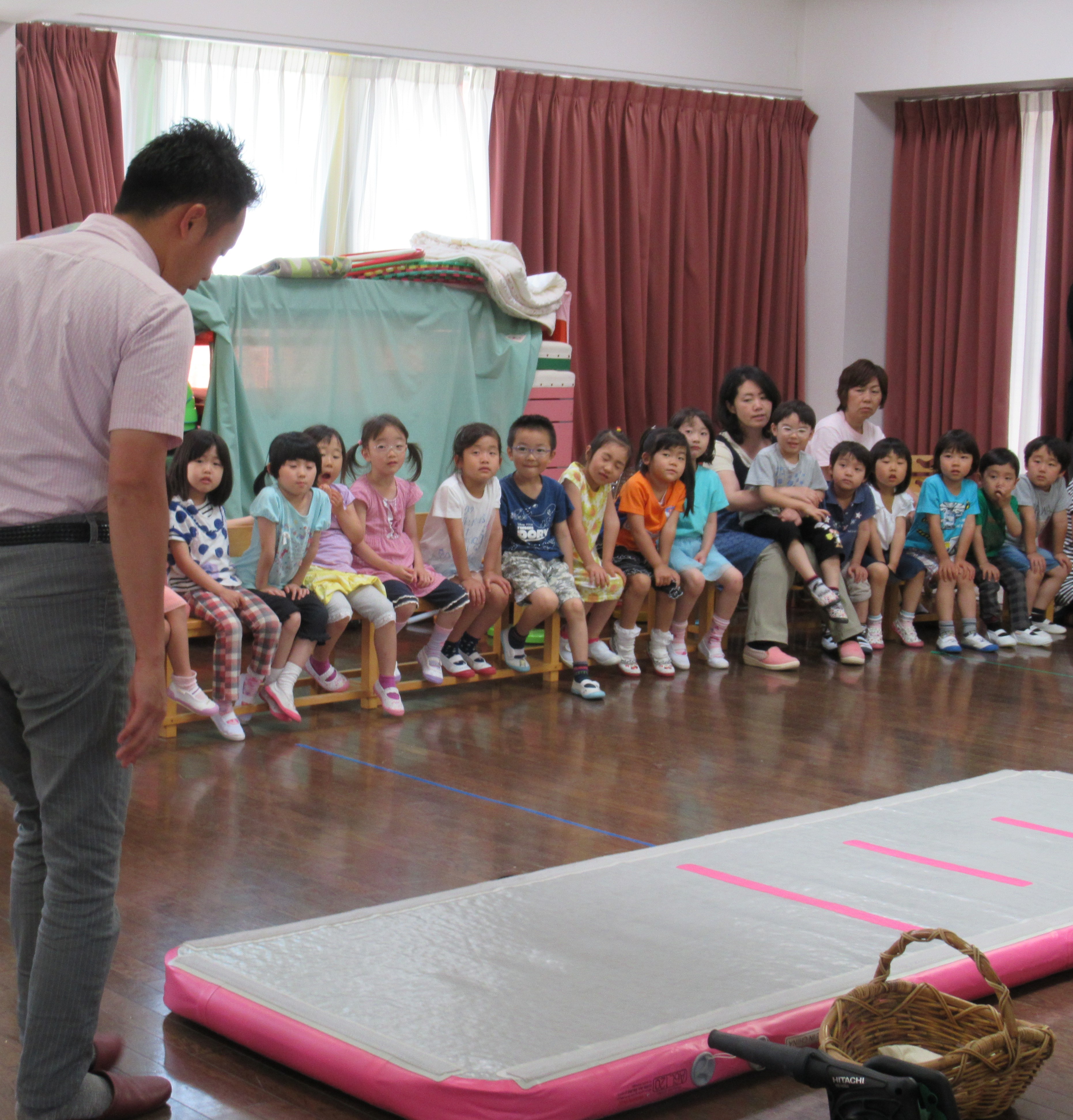 昨年度の父母会費で、買っていただいたエアートラック(トランポリン)がきました。