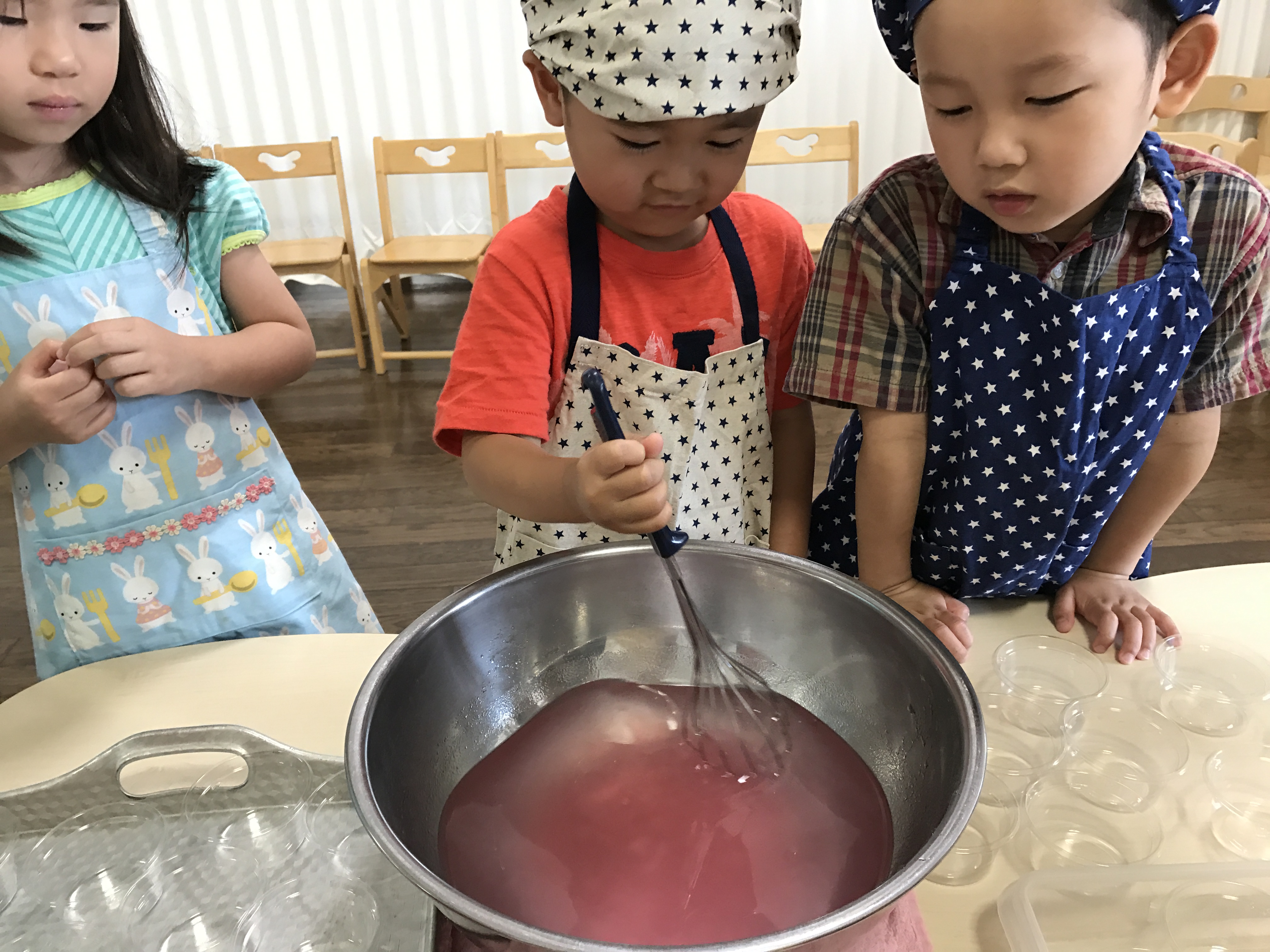 朝から、『もも組』のキッキンコーナーは、ゼリー作り・カレー作り・クッキー作りとフル回転。