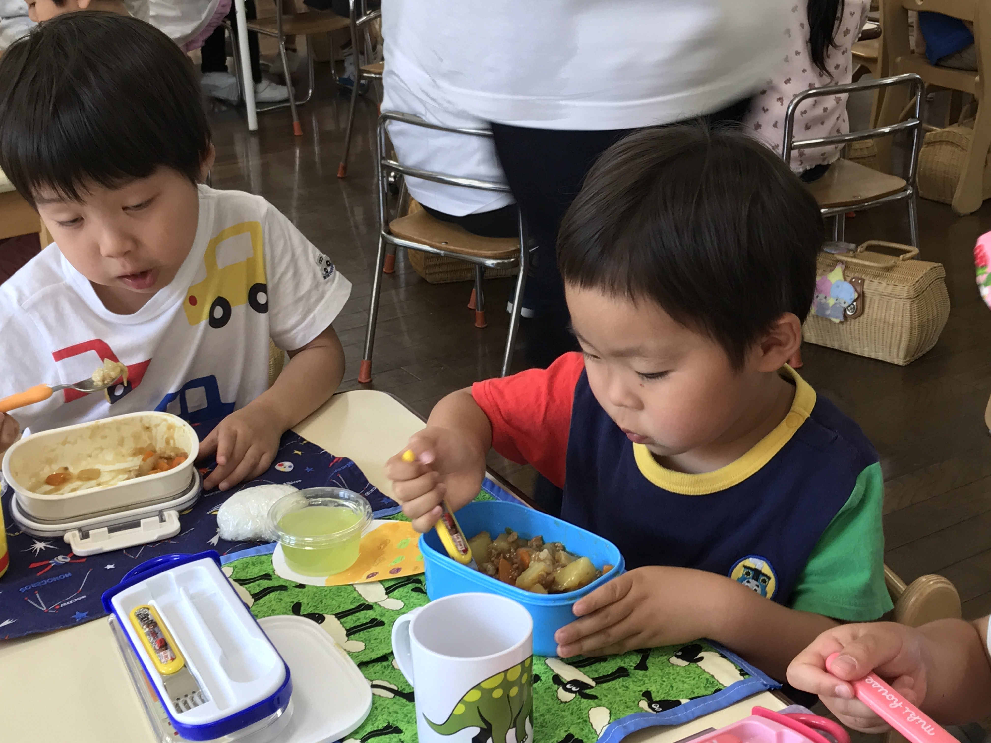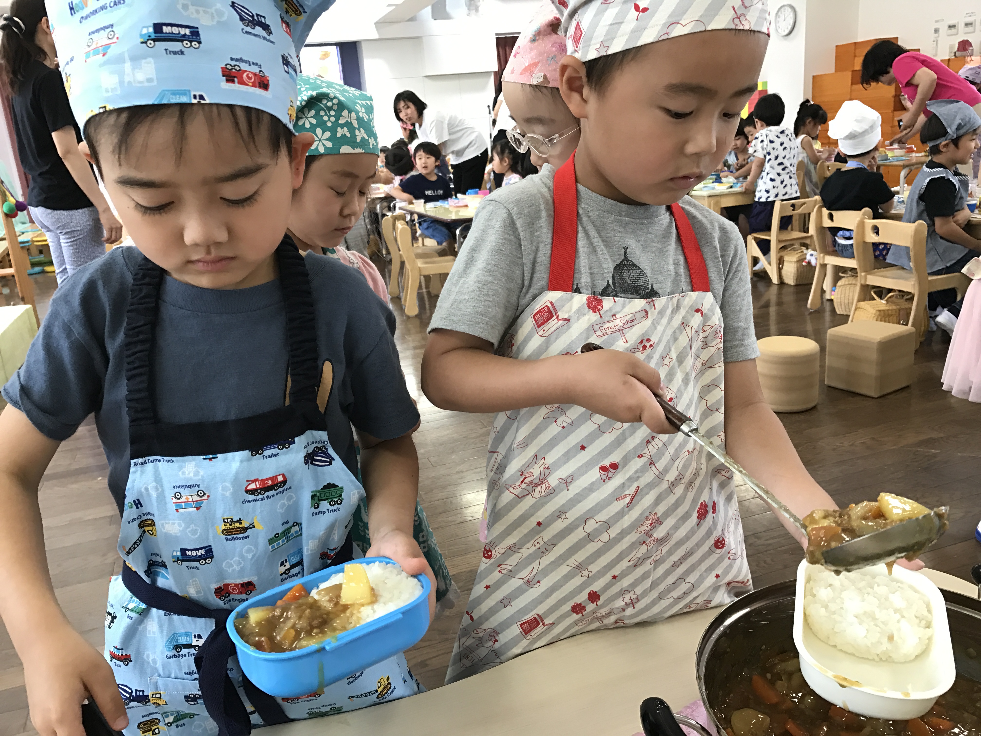 ホールでは、年長組のお友だちが席に案内し、カレーをよそったり丁寧に接待してくれました。