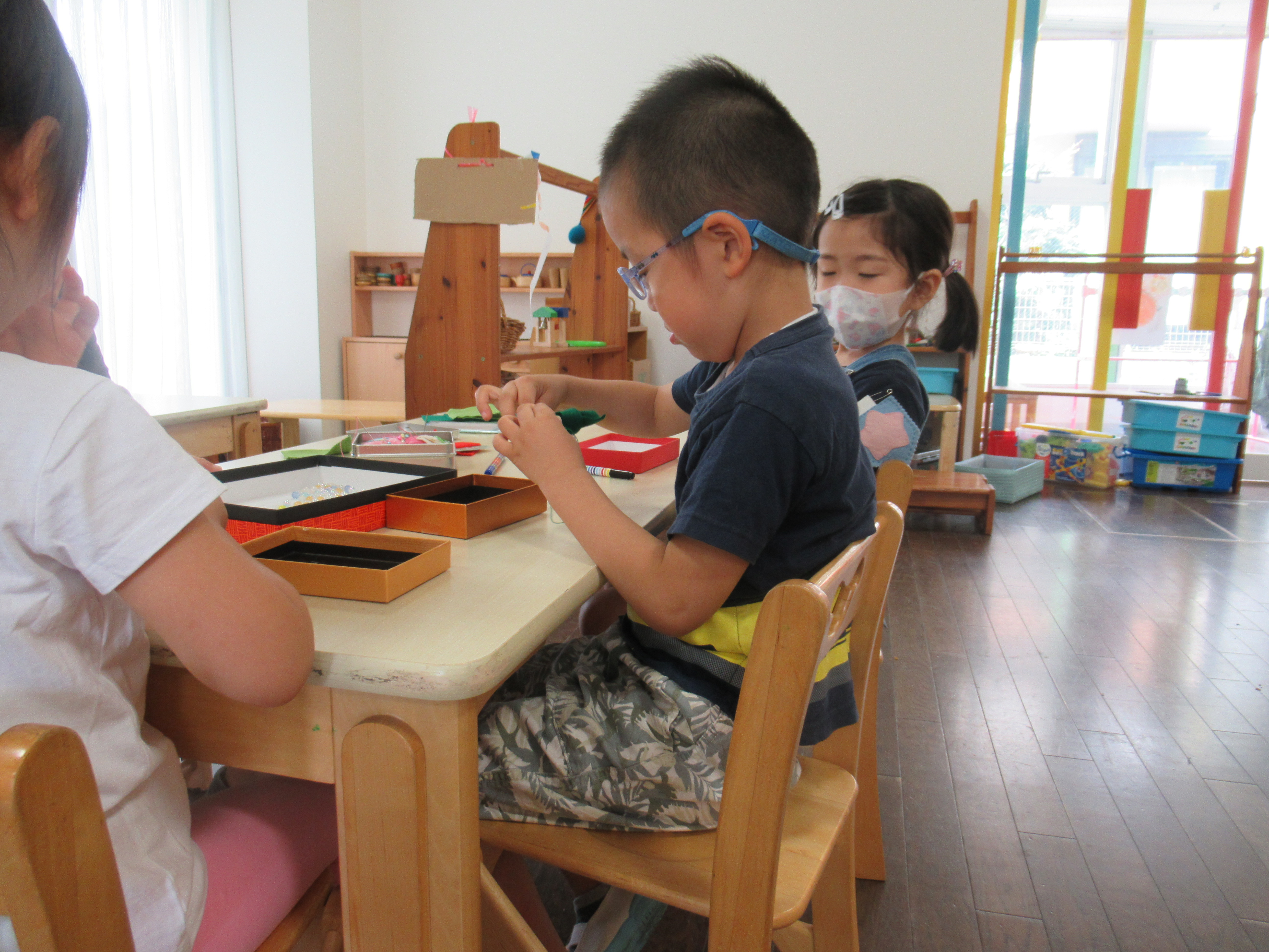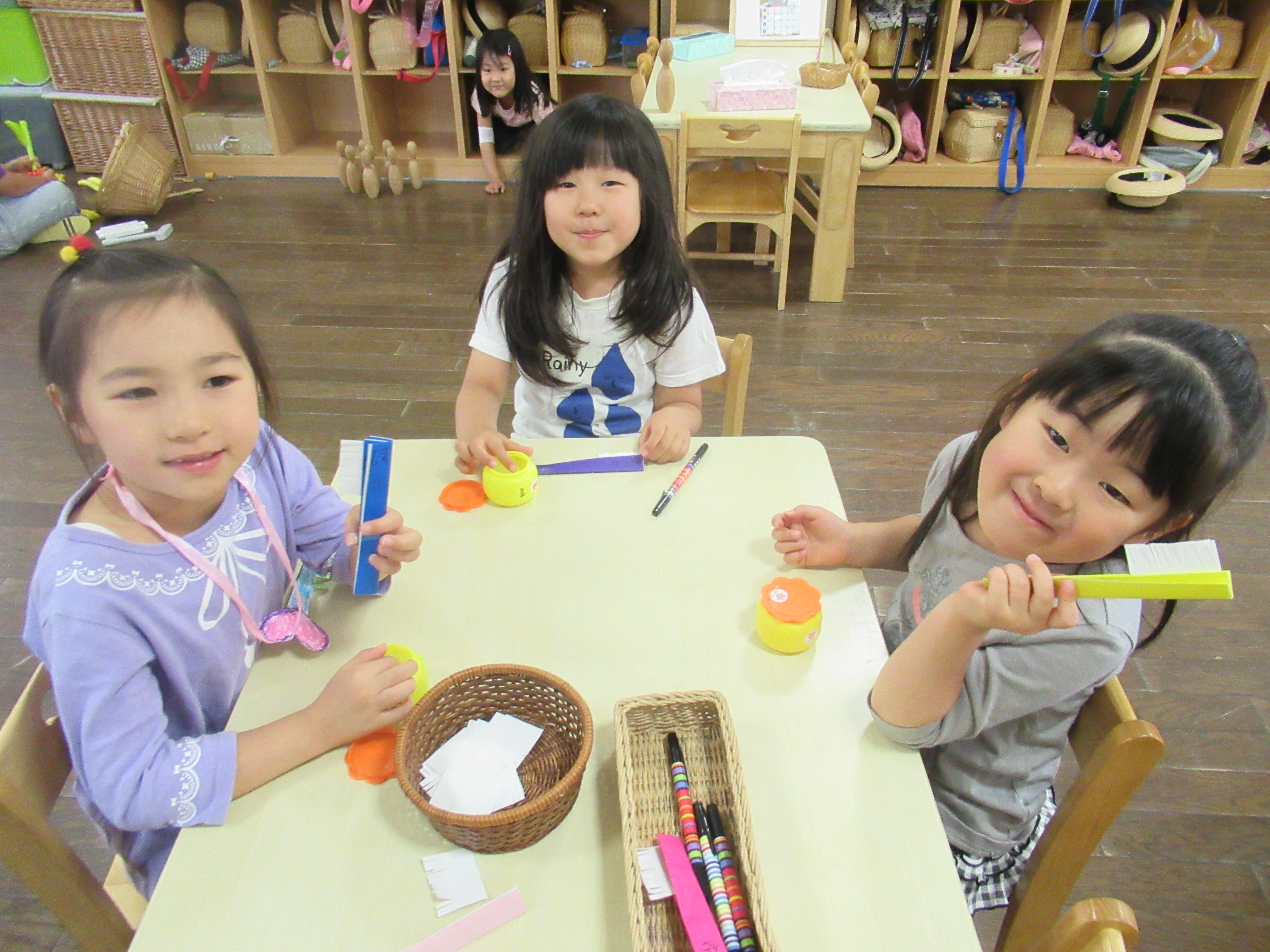 午前中雨が降りそうな空模様…お部屋で好きな遊びや製作をゆっくりと楽しみました。