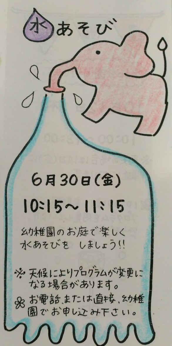持ち物:水着または濡れても差支えない洋服・濡れても差支えない帽子 おむつがとれていない方はプール・水あそび用おむつ