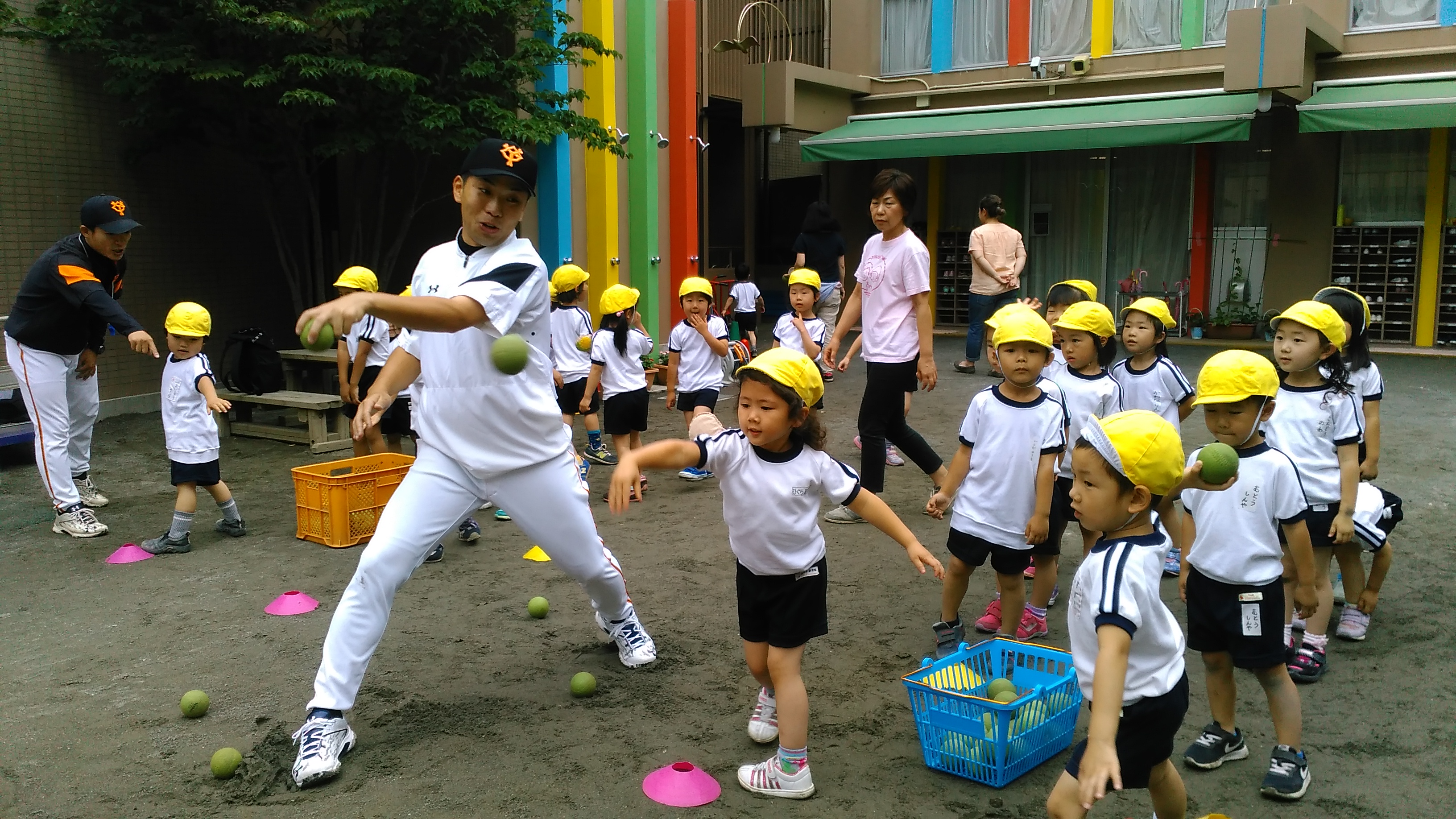 たんぽぽ組とさくら組は「ジャイアンツの野球教室」に参加しました。