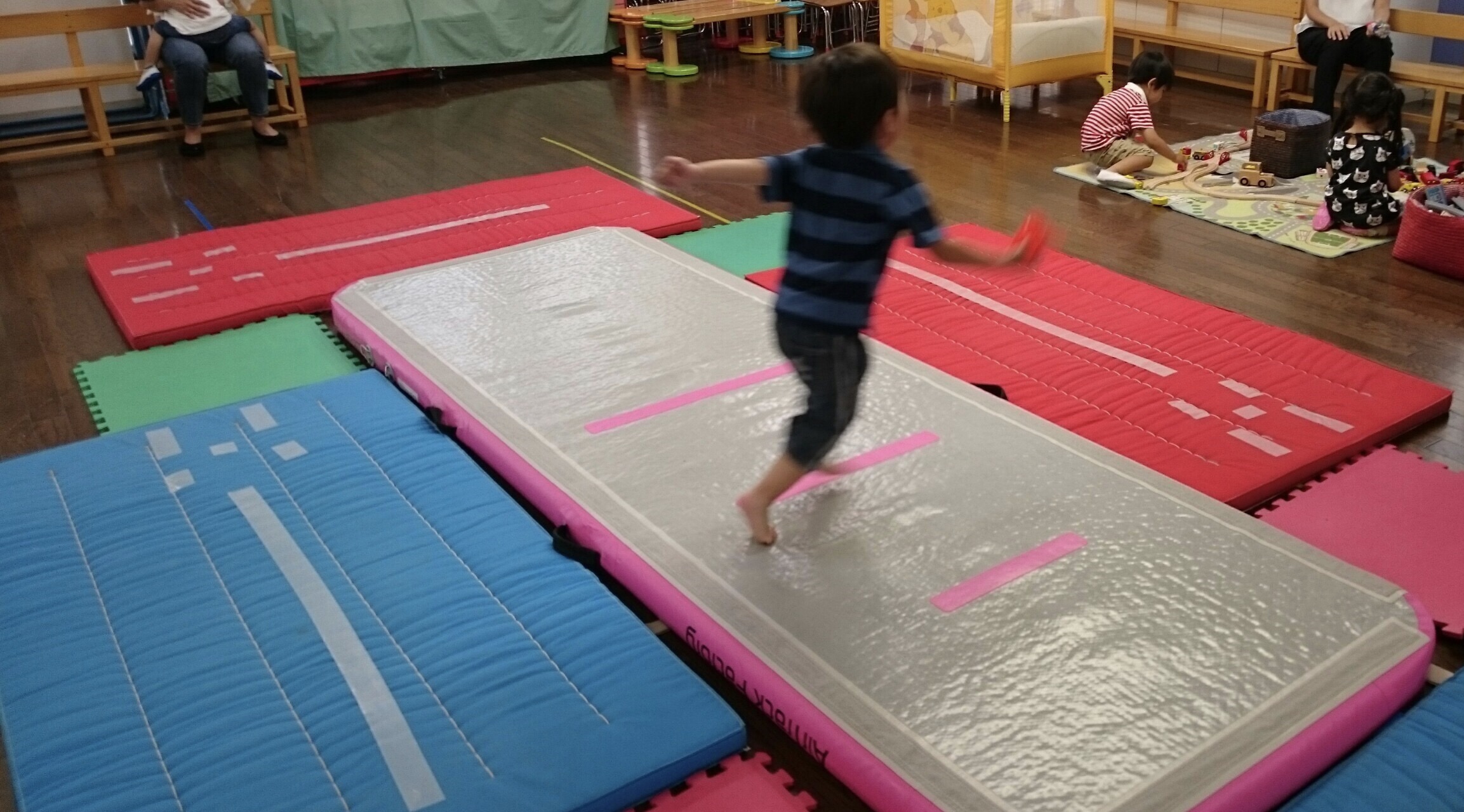 エアマットでジャンプをして遊んだり、滑り台をしたり。。好きな遊びを楽しみました。