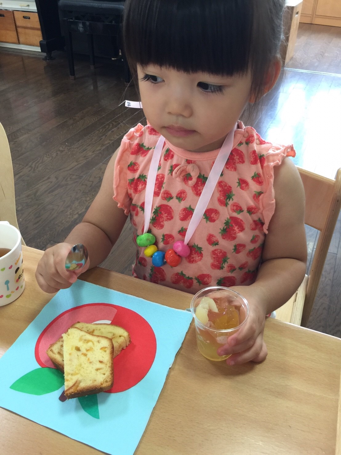 冷たいゼリーとオレンジケーキをいただいて、ティーパーティーをしました。とても楽しい時間になりました。