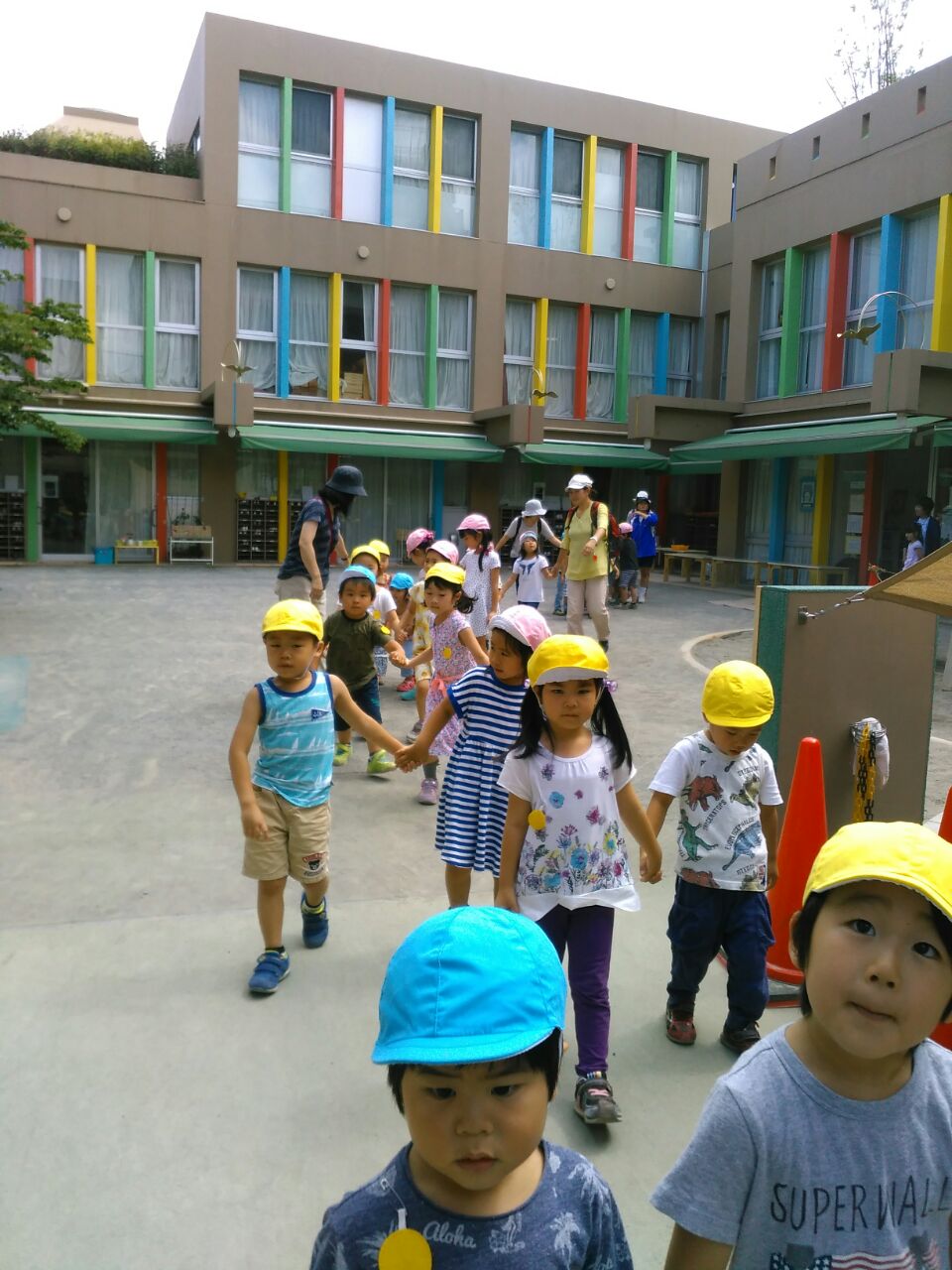 今日も天気の良い日!グループ交流2日目も水久保公園に頼もしいさくら組のお兄さんお姉さんと手を繋いで行きました。暑かったけど、自分でしっかり歩きましたね!