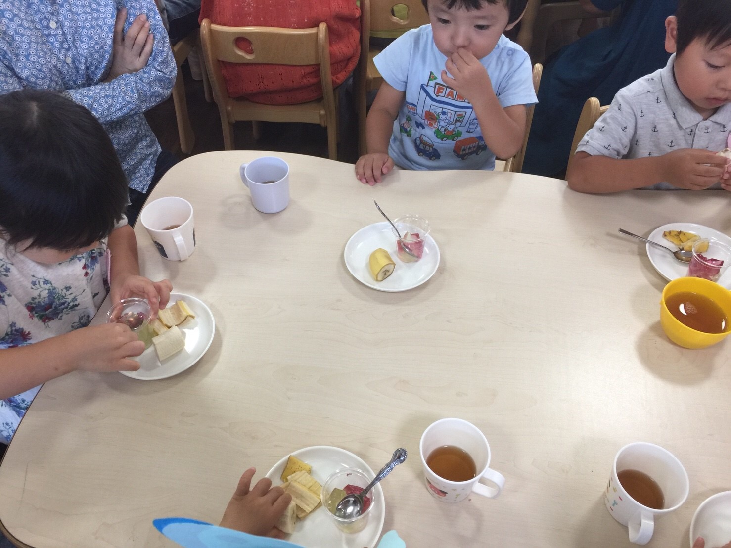 今日はおやつの後、とんぼのめがねをさくら組さんからプレゼントしてもらいました。うれしかったですね。
