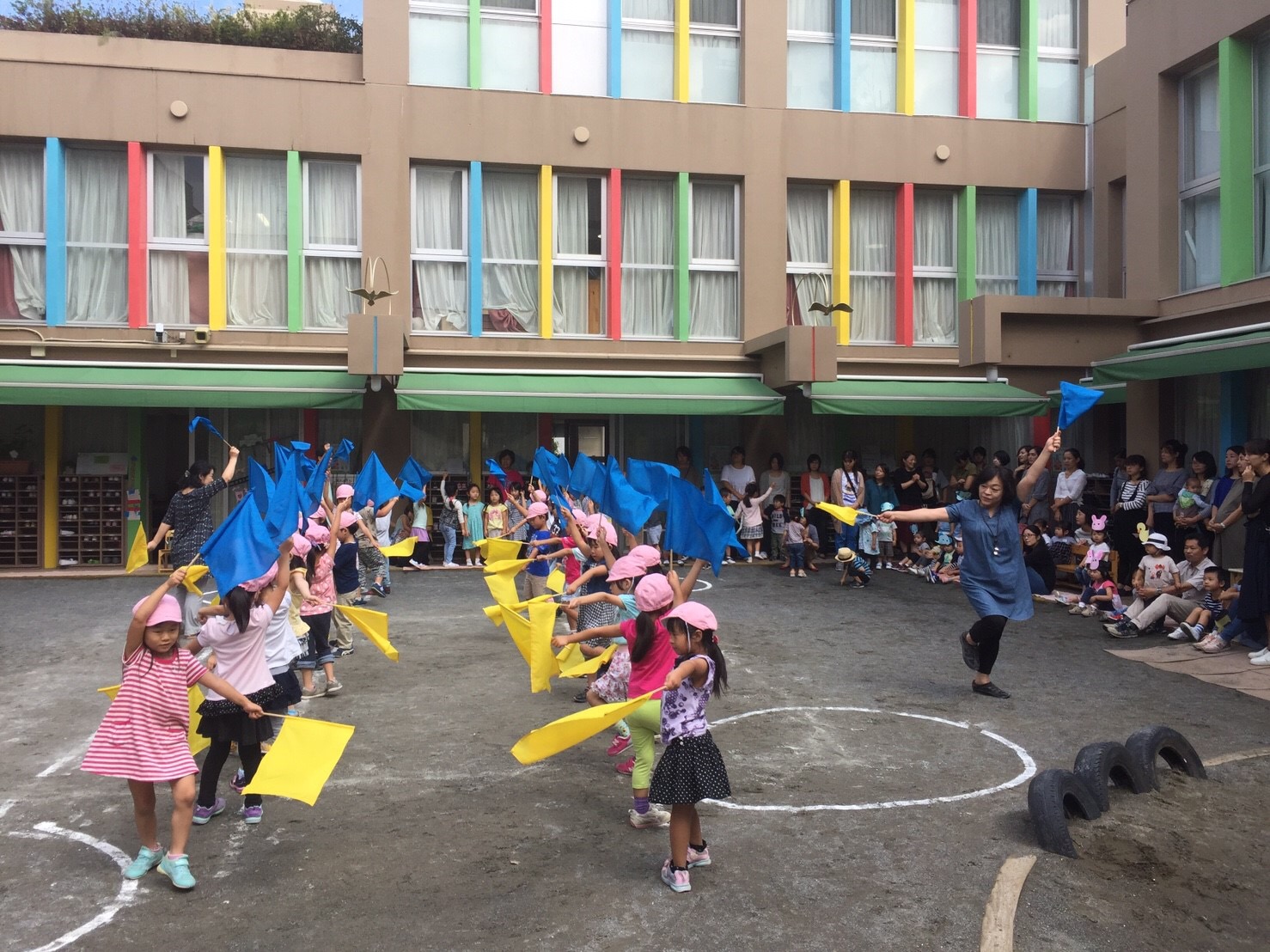 さくら組さんのフラッグダンスを見せてもらいました。とてもかっこよかったです!