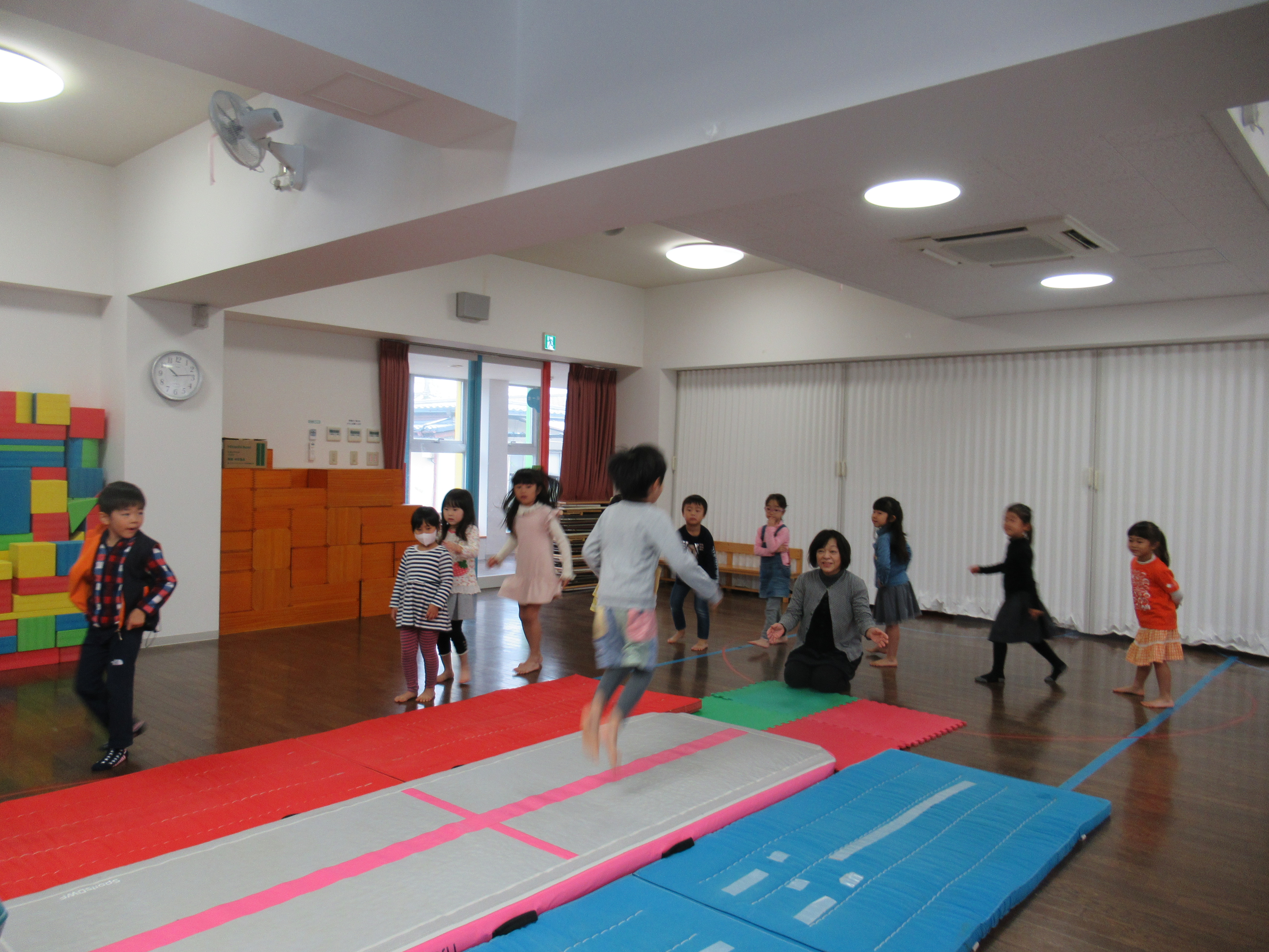 いつもと同じ力で、飛んでいるのに、いつもよりも高く、遠くに飛べるエアートラック!うさぎになったり、かえるになったり…夢中になって遊びました。
