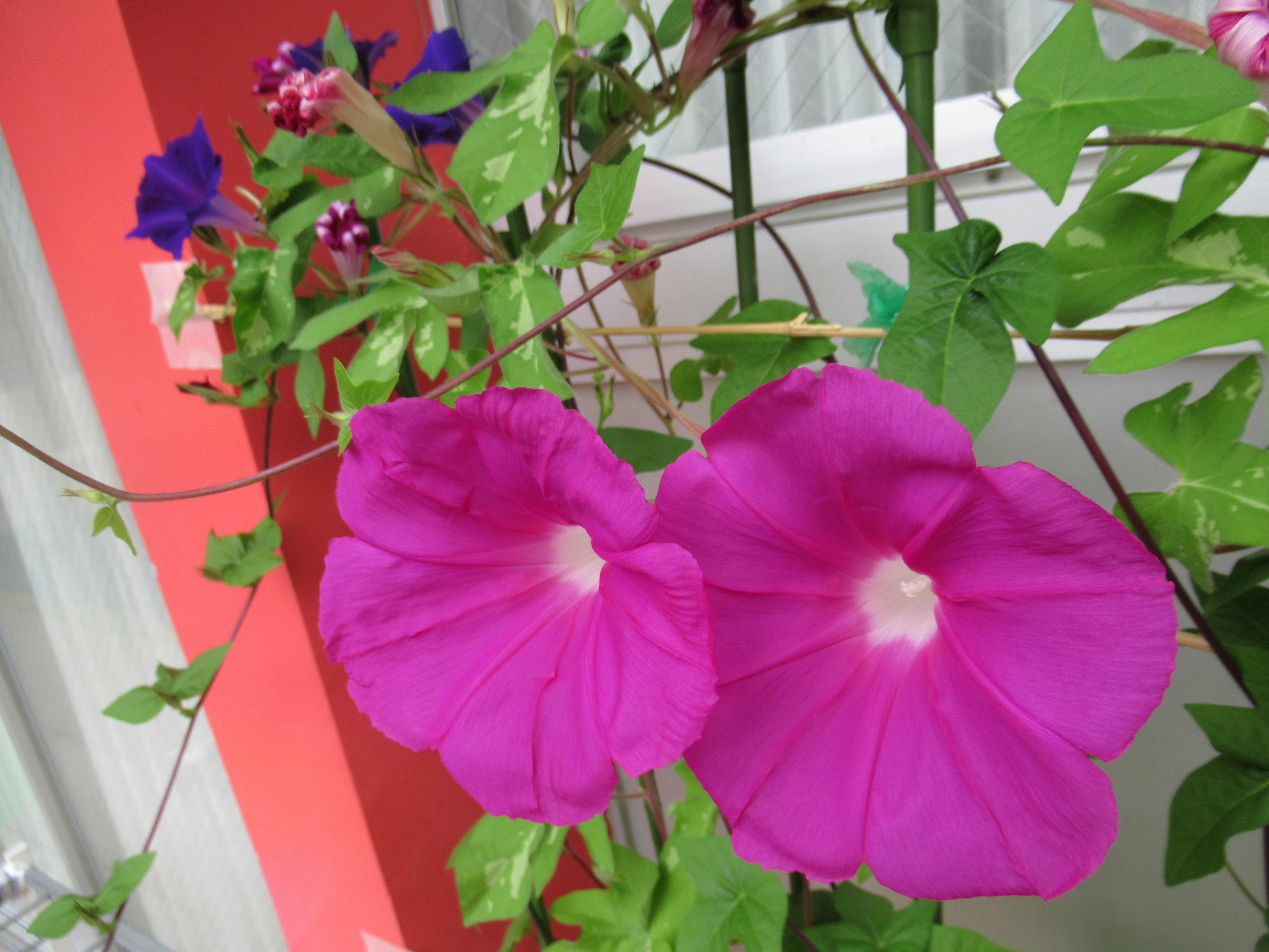 春に植えた朝顔は、夏の間、濃いピンクや紫のお花をたくさん咲かせて私たちを楽しませてくれました。