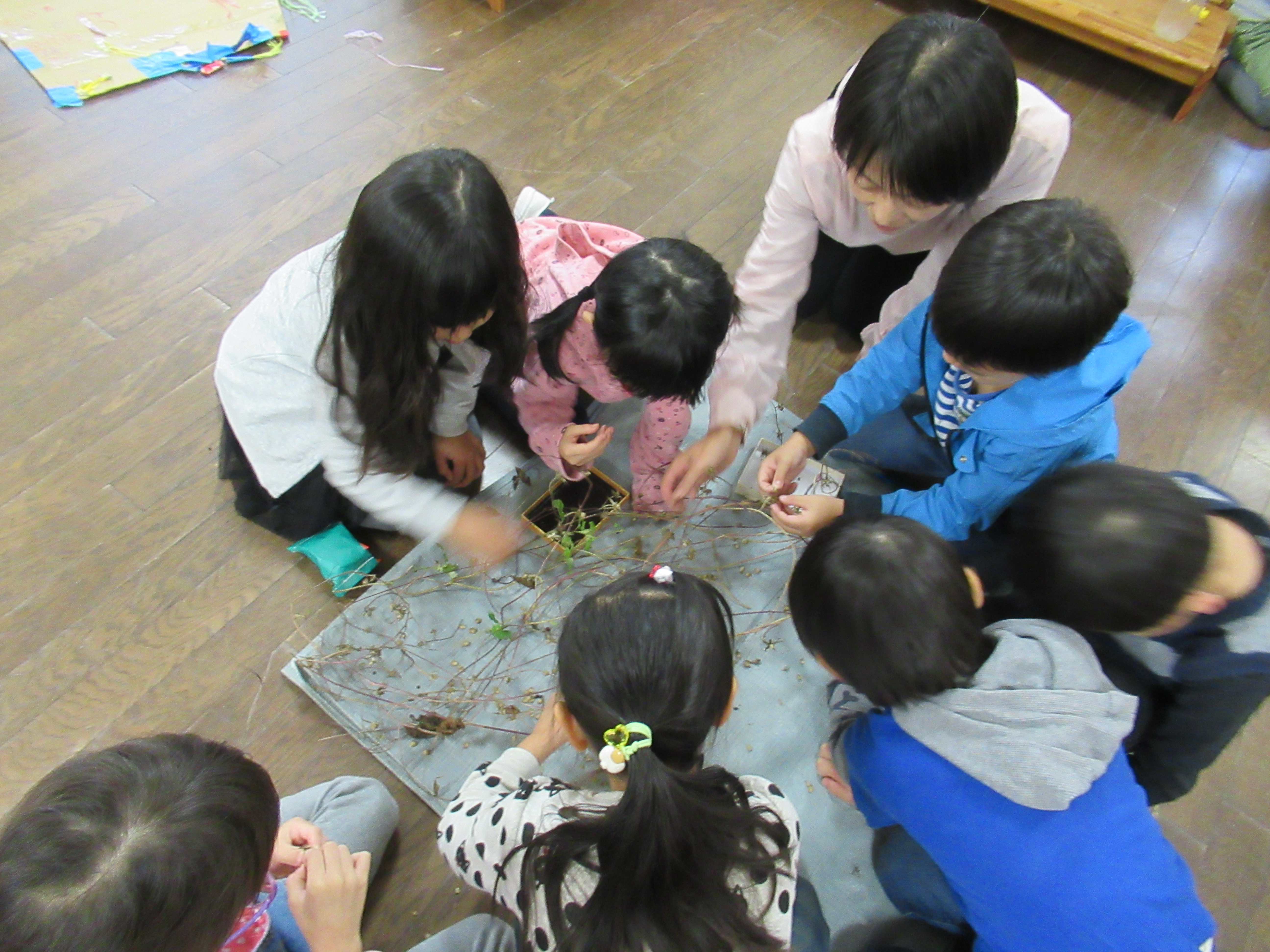 今日は、みんなで種を集めました。