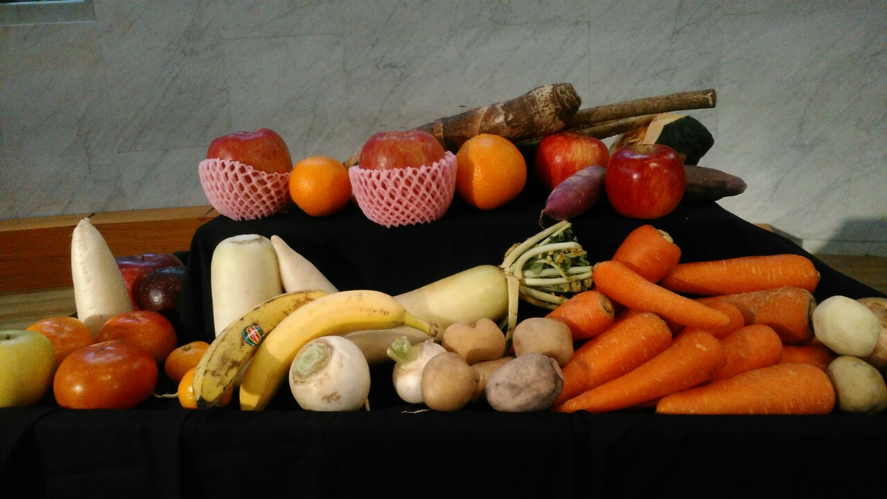 お家から持ち寄った野菜、果物を捧げ、秋の豊かな収穫の恵みを神様に感謝する礼拝をお家の方々と一緒に守りました。