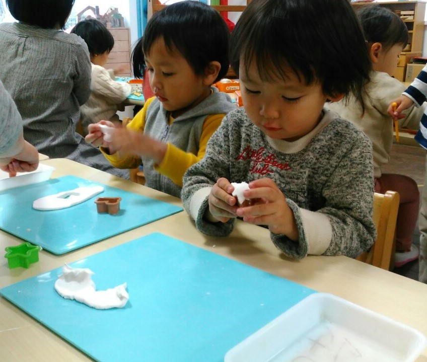 形は星とツリーと靴下です。この中から2つを選んで型抜きしました。明日は自分で型抜きしたものに、色をつけます。