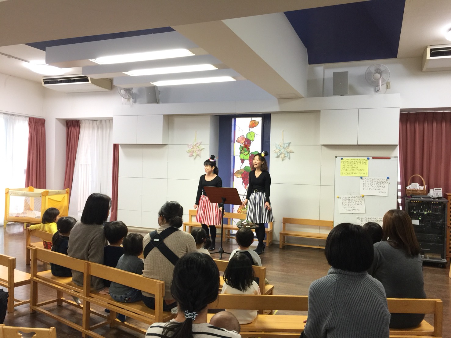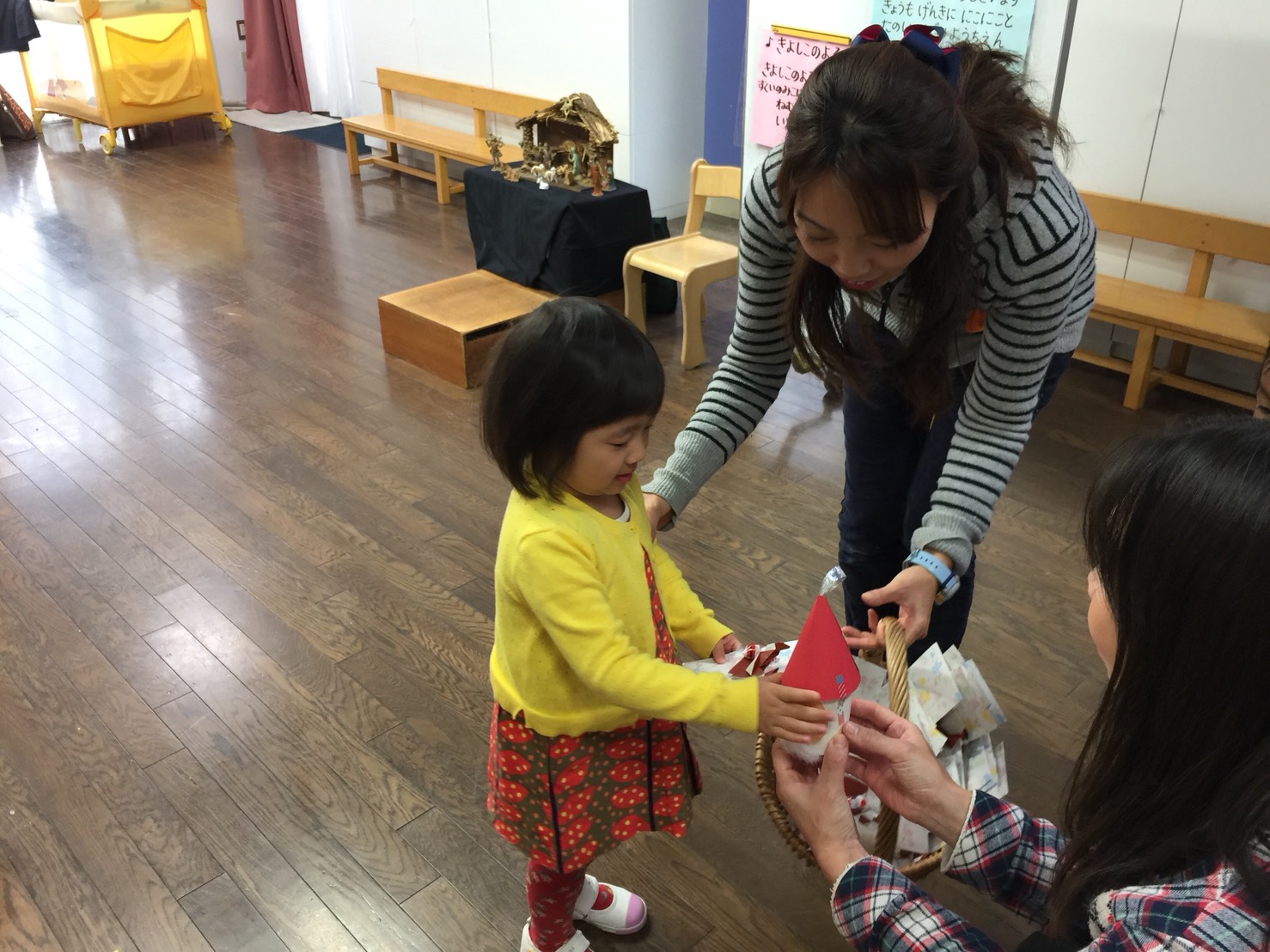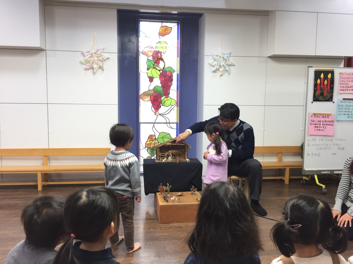 礼拝をして、クリスマスのメドレーをみんなで楽しみました。園長先生にクリスマスのお話をしていただき、イエス様のお誕生をみんなでお祝いしました。