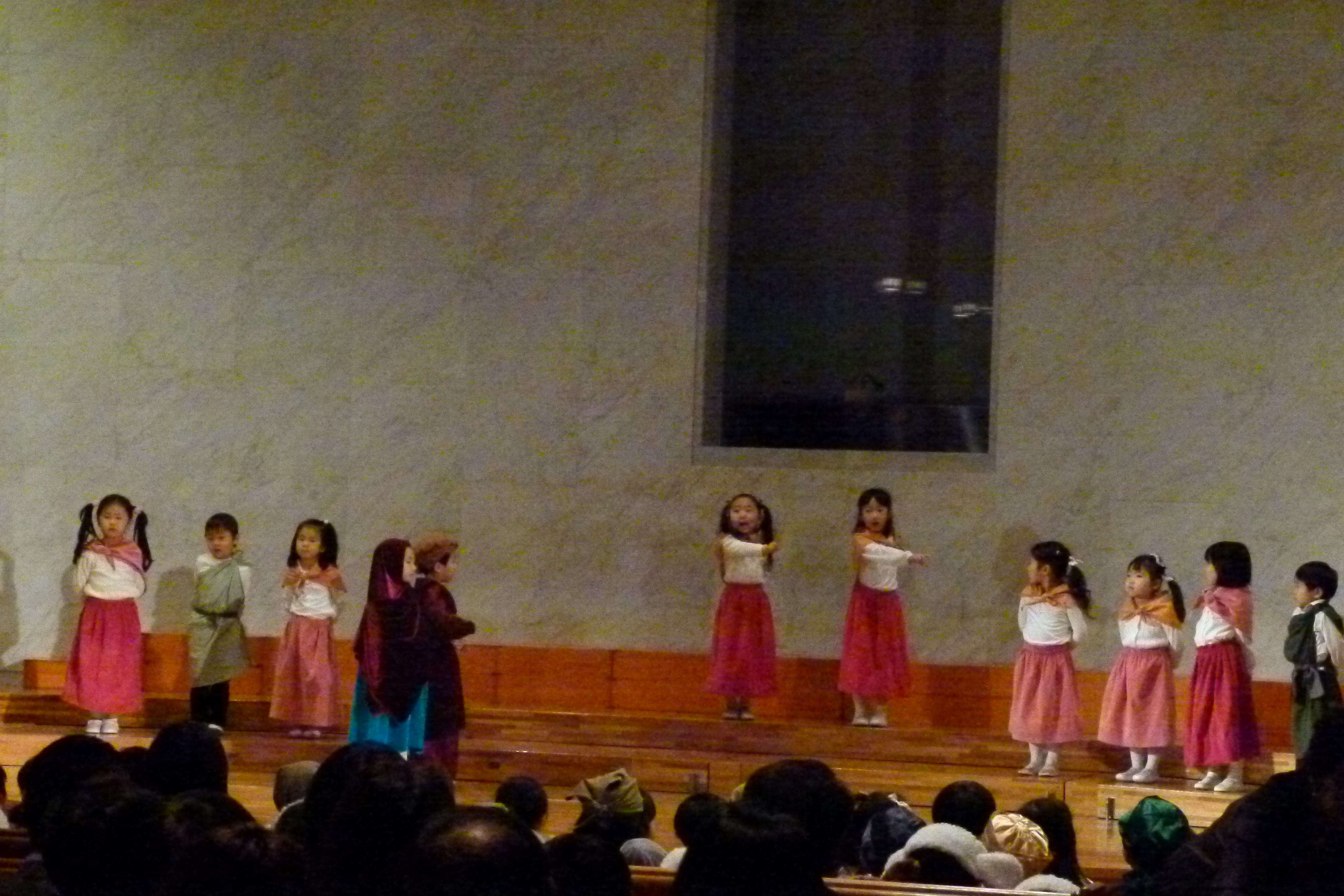 年長組の子どもたちは、最後のページェントです。学校に行ったら、ミッション系の学校以外は学校でのクリスマスのお祝いやお話しに触れる事もなくなるのでしょう。