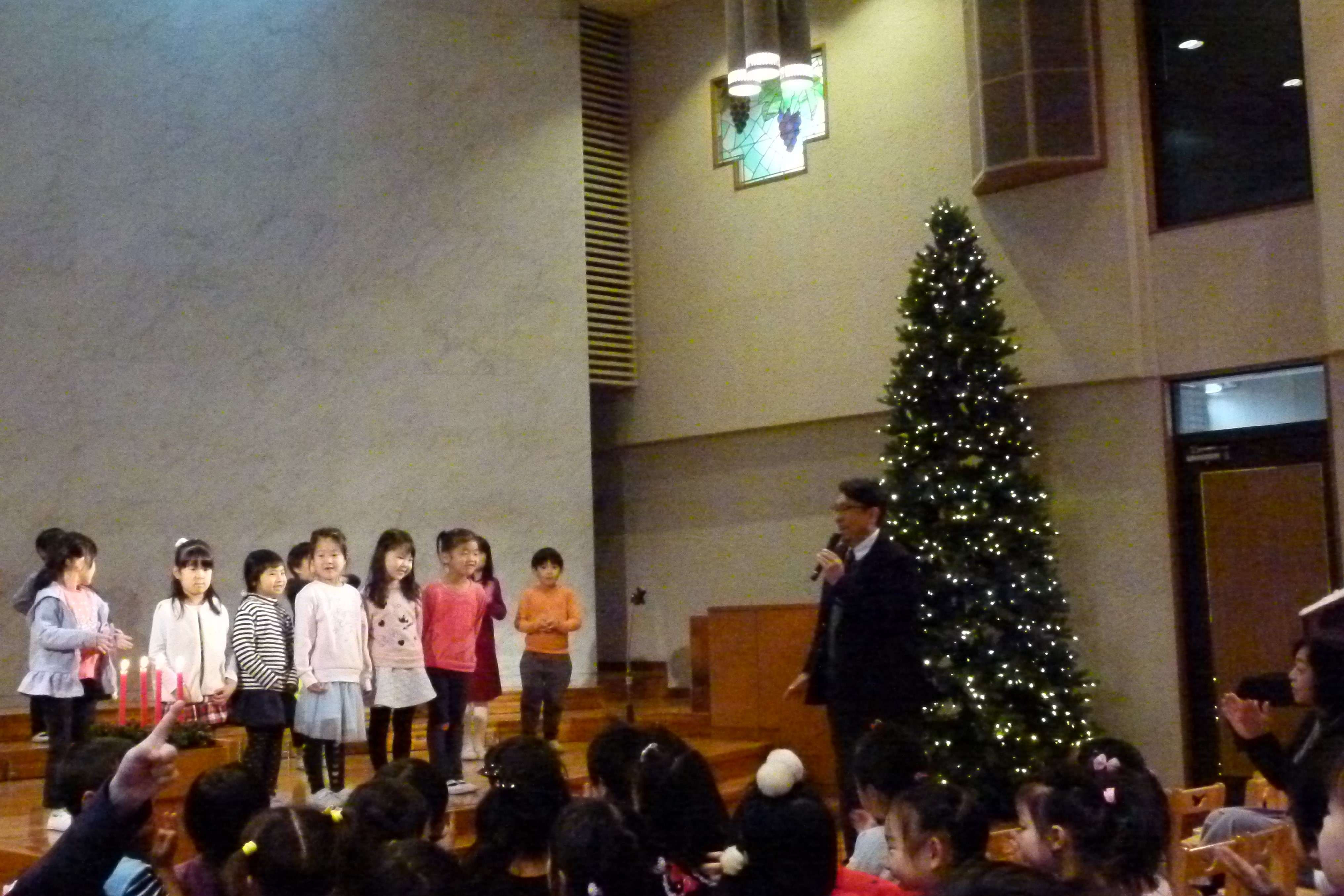二学期は…バザーや運動会。雨で何度も延期なったお芋掘り遠足。消防車・収穫感謝祭、親子観劇会。クリスマス礼拝。楽しい事がたくさんありましたが、お友だちがお引越しをしたり・お休みをしたりして、寂しい思いも感じた事もあり、色々な体験を通して、心も身体もたくさんの事を感じる事が出来た二学期でした。