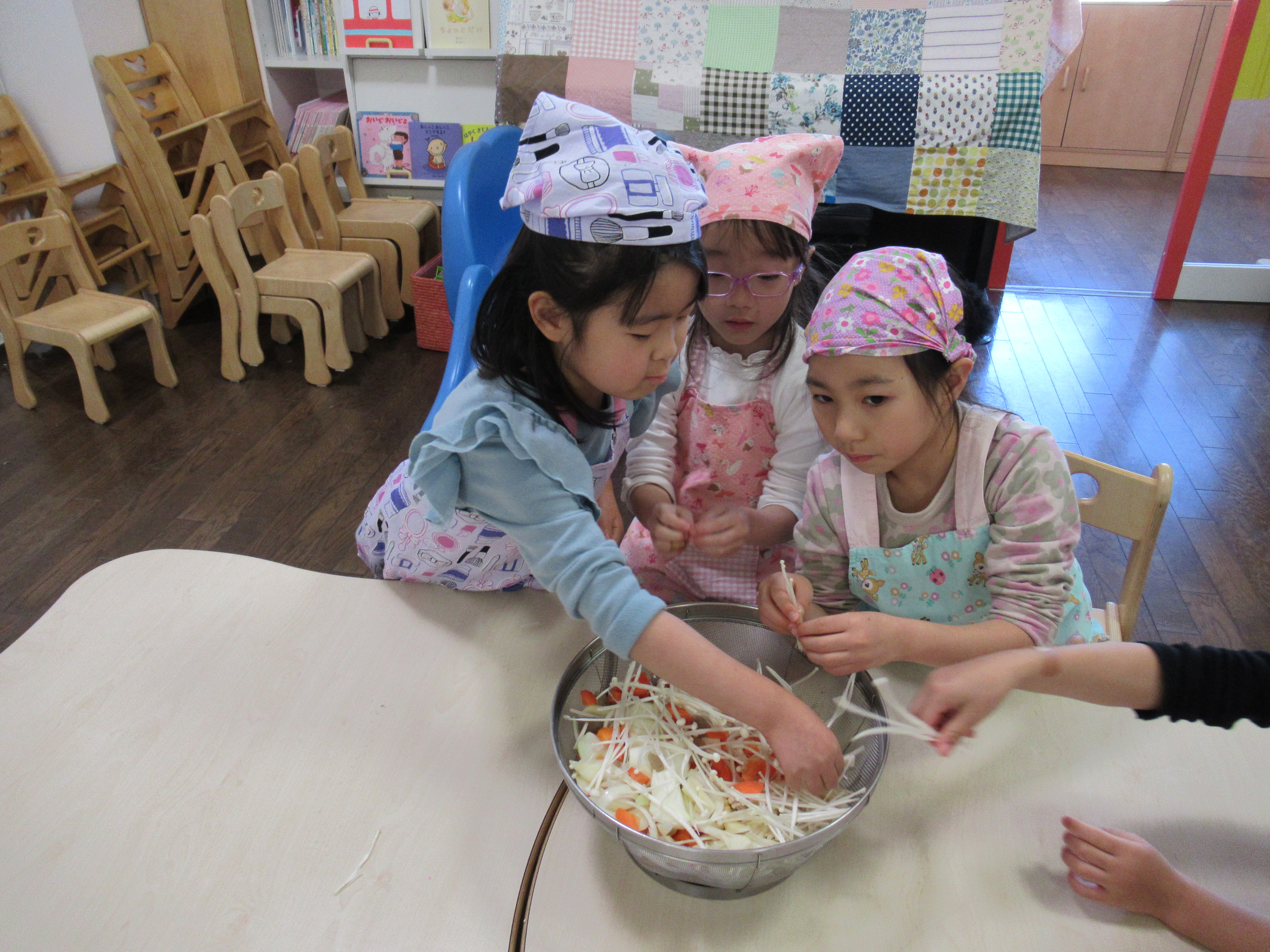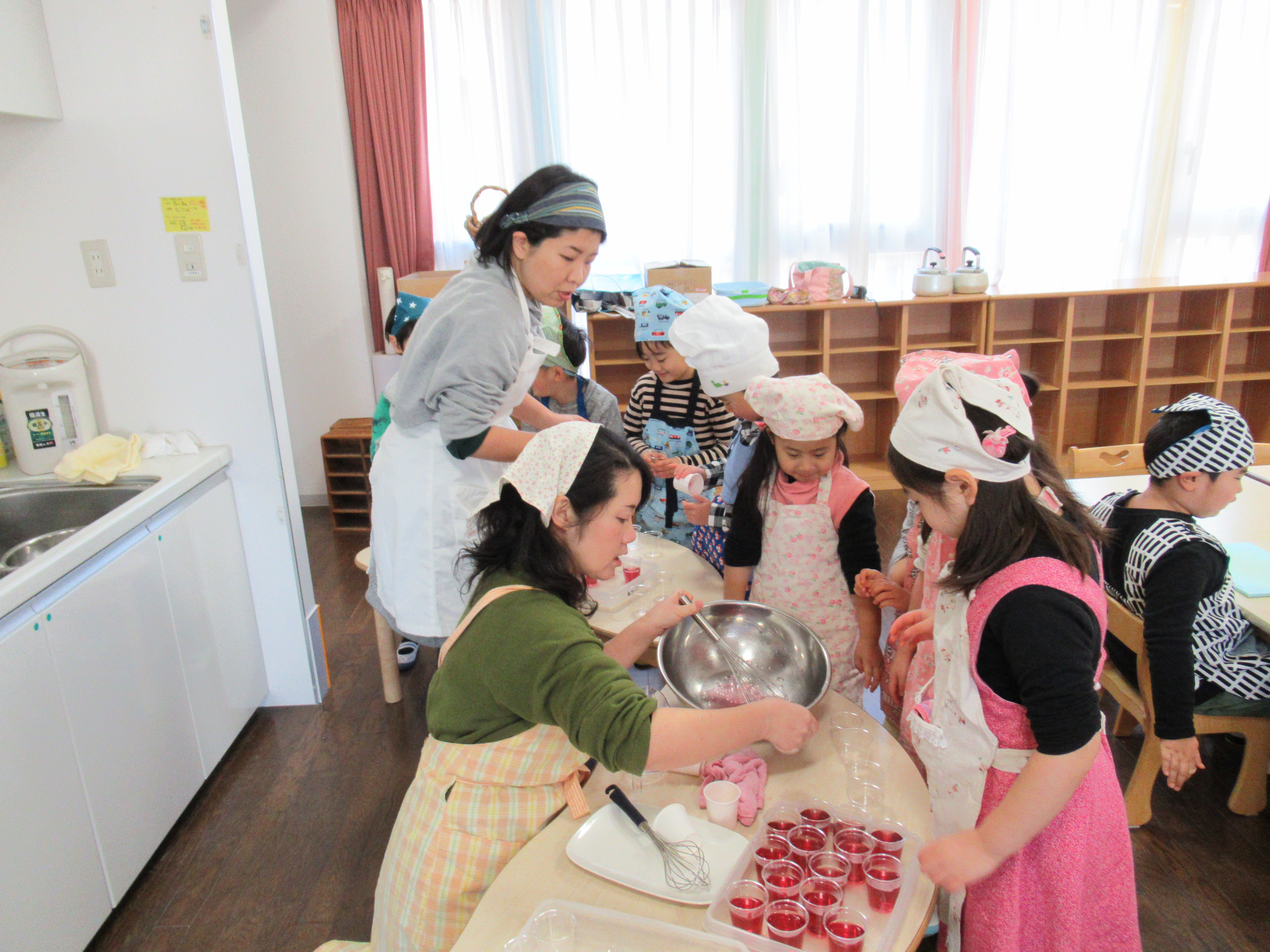 今日のメニューは、豚汁とゼリーです。豚汁に入れる野菜などをトントンと包丁で切る手つきは…流石!さくら組さん。ゼリーの味はみんなで相談してぶどうにしました♡