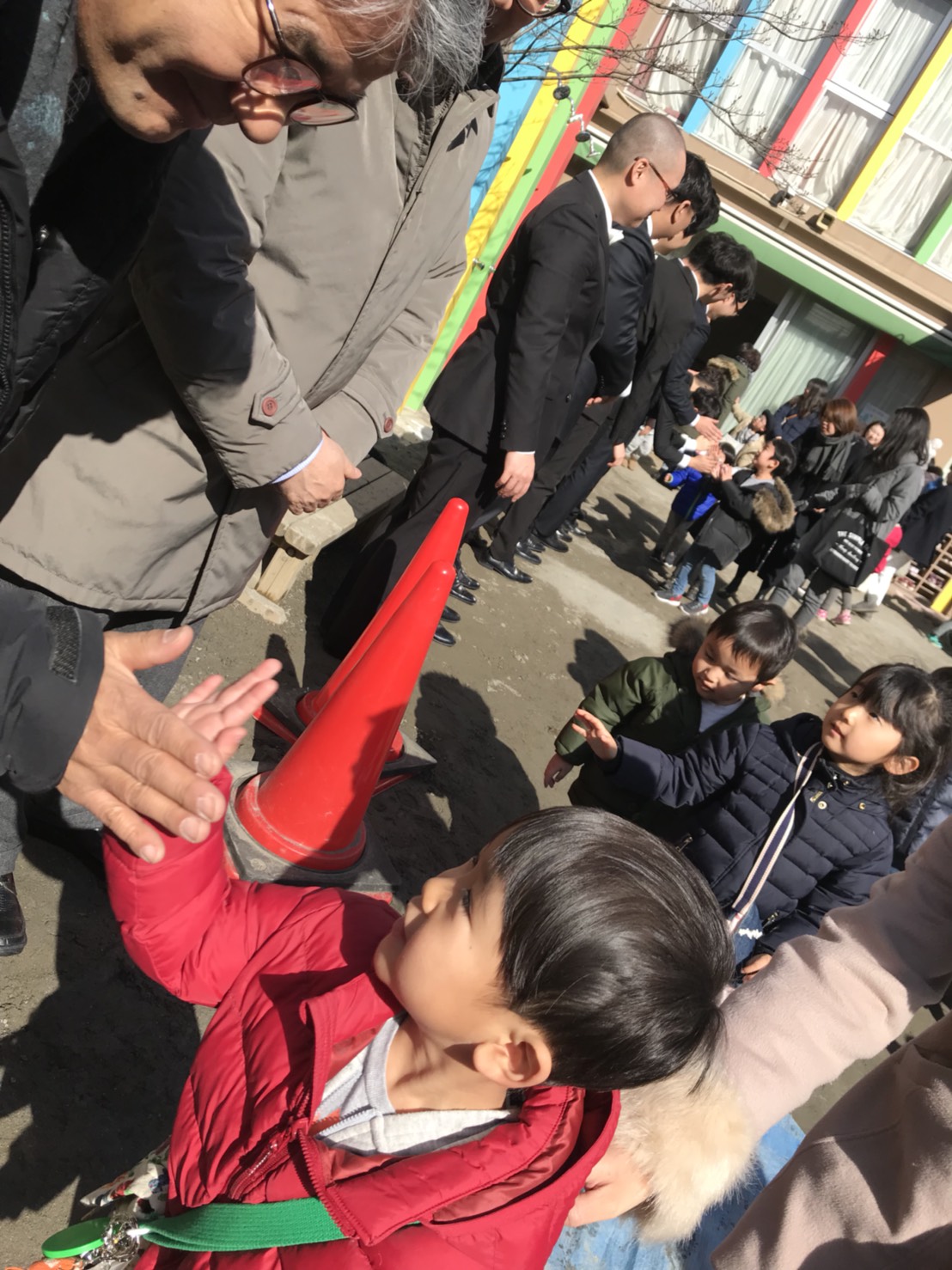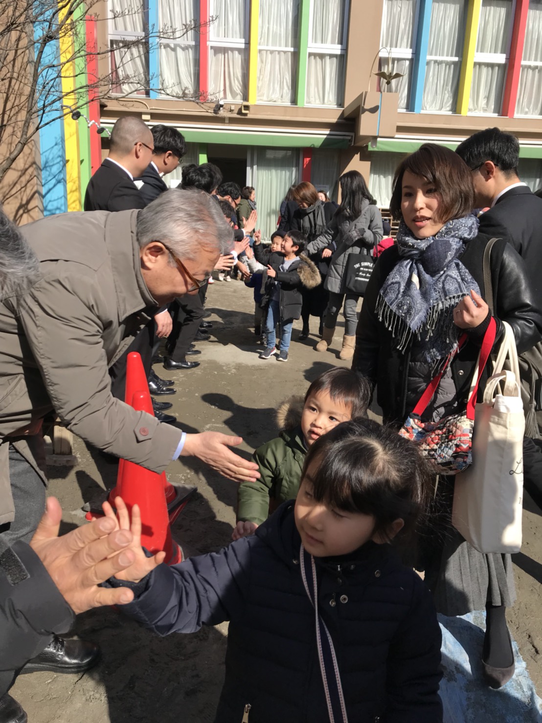 降園時には園庭で言葉を交わし、握手、ハイタッチで賛美のお礼をして温かい時間を過ごしました。