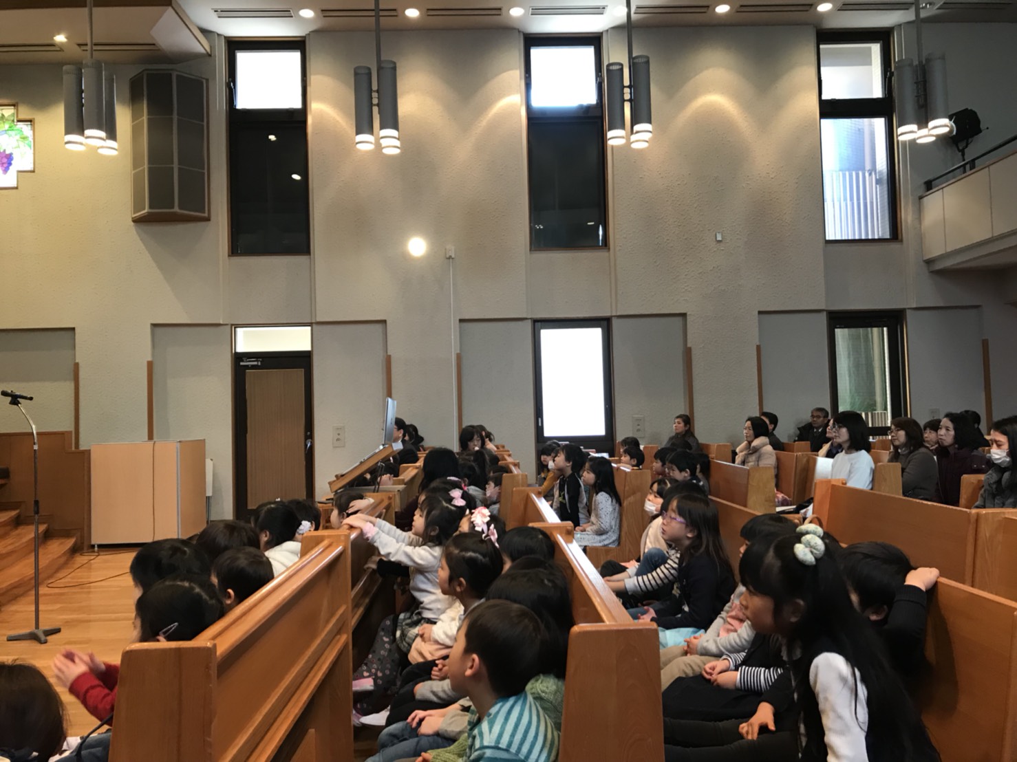 予め韓国からのお客様と聞いていたので、賛美が始まると「日本語で歌っているね」と気付いたお友達。引率の先生から合唱団の方は日本での演奏会の為に1年間日本語を勉強されたと聞きました。「韓国語を話せるようになりたいな」と言っているお友達もいました。