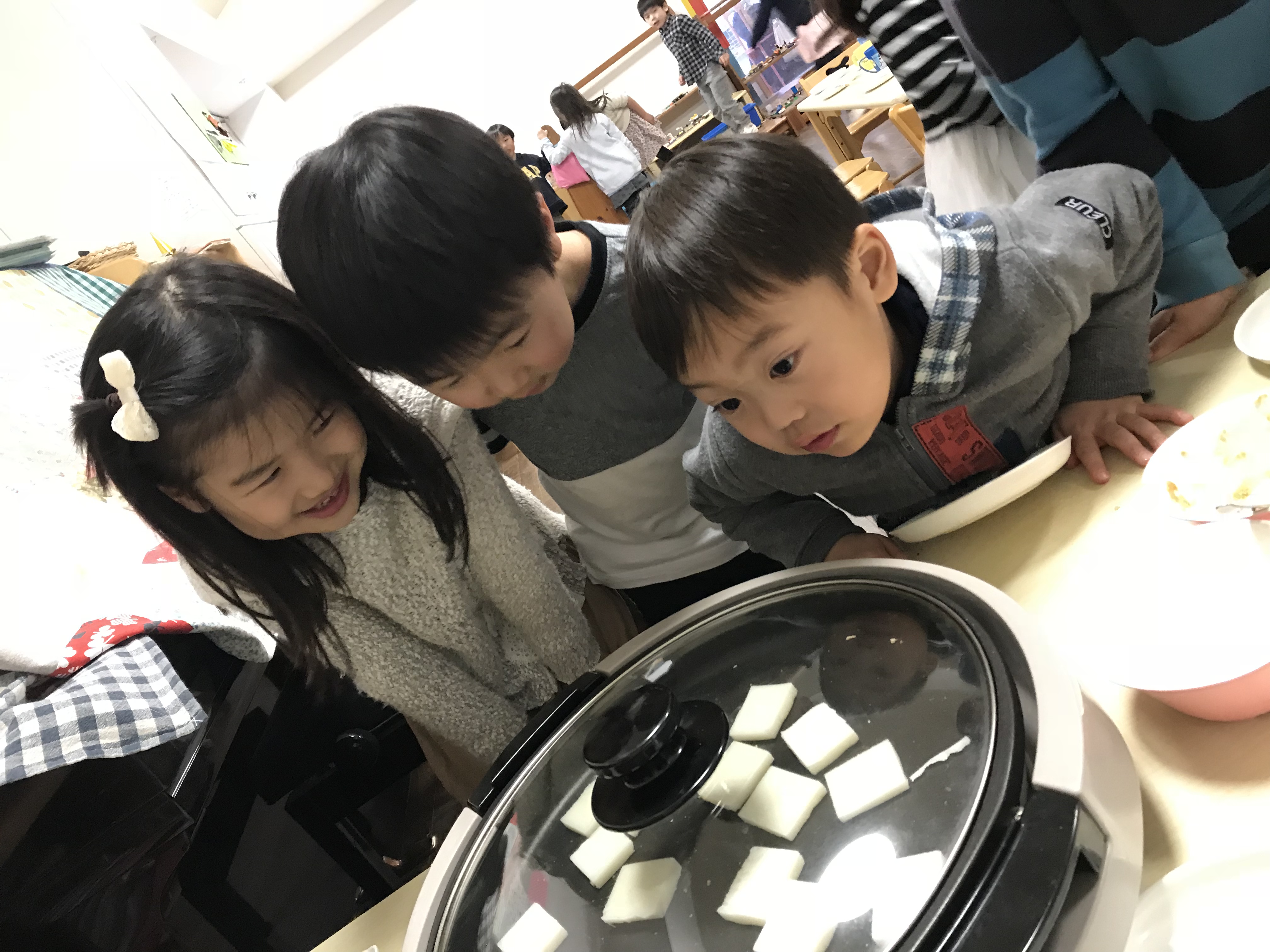 きな粉やチーズ、のりにしょうゆと…好きな味を楽しみました。寒い季節に焼きたてのお餅は、身体があったまり…美味しかったですね。