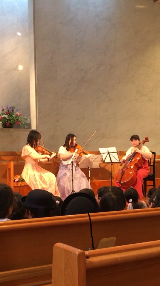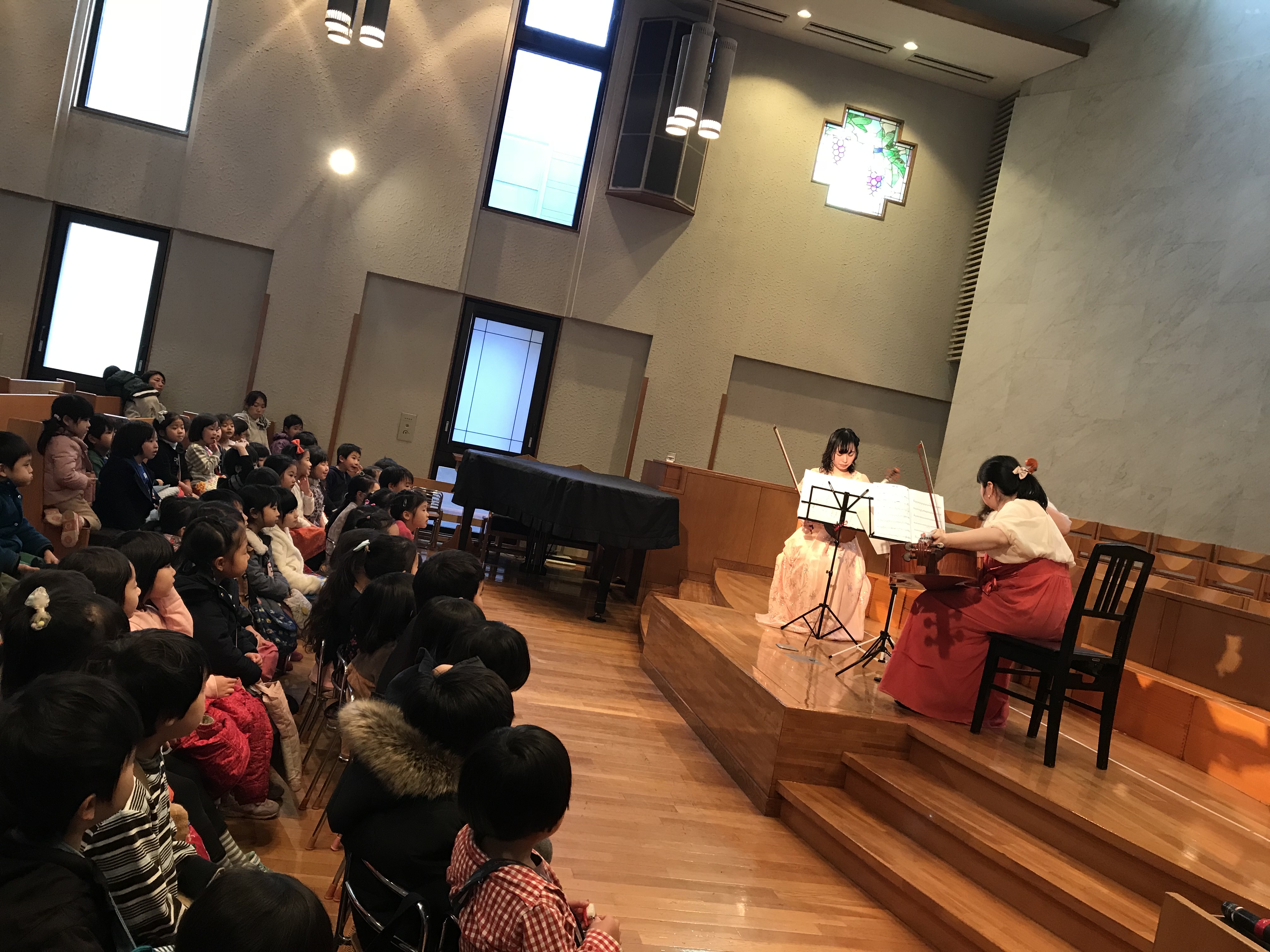 午後からは、音大生の方が子どもたちのために、コンサートをしてくださいました。 楽器の紹介・曲の紹介も丁寧にし、子どもたちの反応にも優しく対応してくださる…とてもステキなお姉さん方でした。
