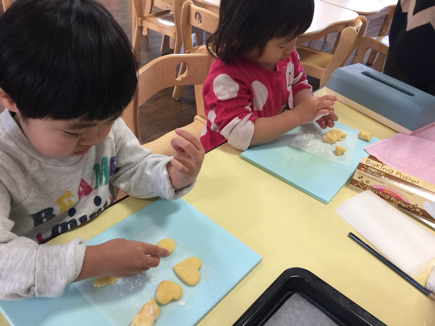 おうちの方とクッキー作りをしました。いろいろな形のクッキーが出来ました。とても美味しかったですね。おうちでもぜひ作ってみて下さい。