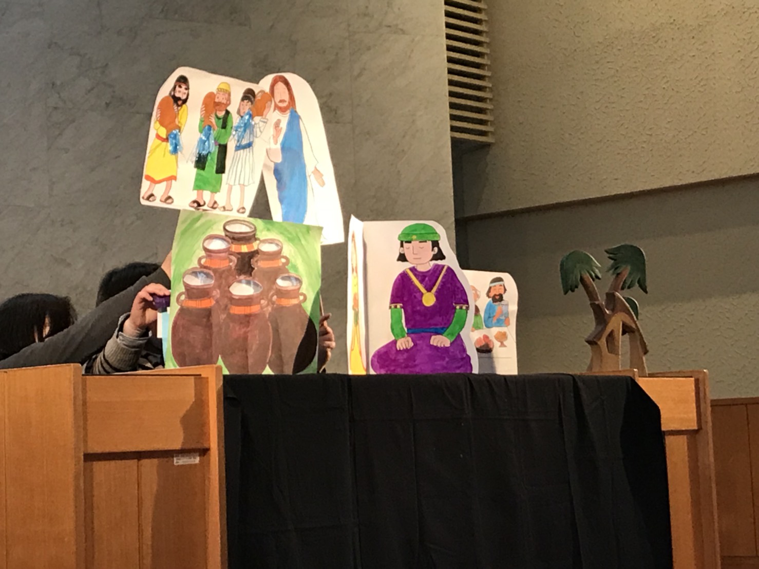 今日の水曜礼拝は園児参加でした。お話はイエス様の最初の奇跡「カナの結婚式」でした。