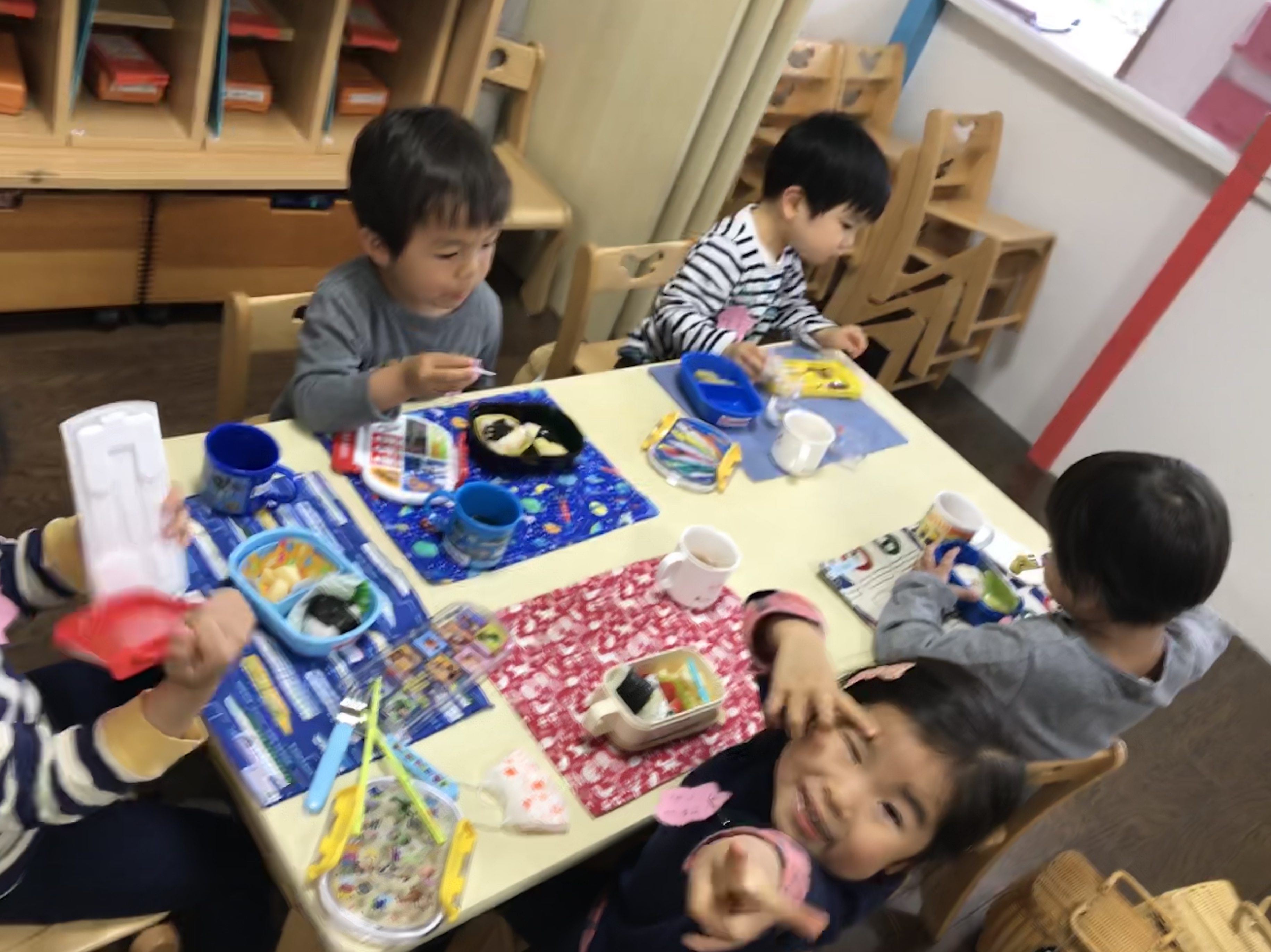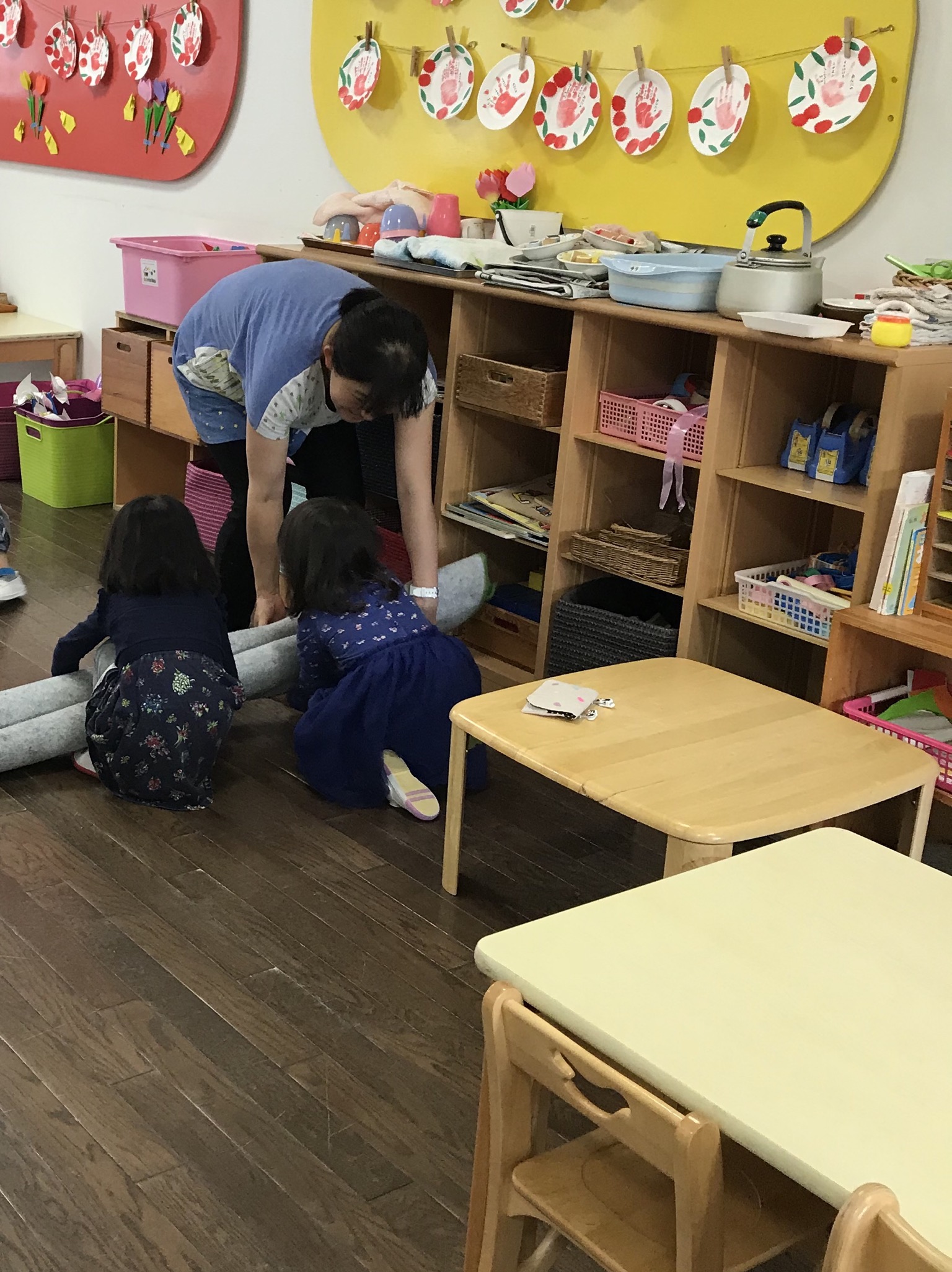 いっぱい遊んで、お片づけの後には、自分のマークの場所にちゃ〜んと戻ってきます。