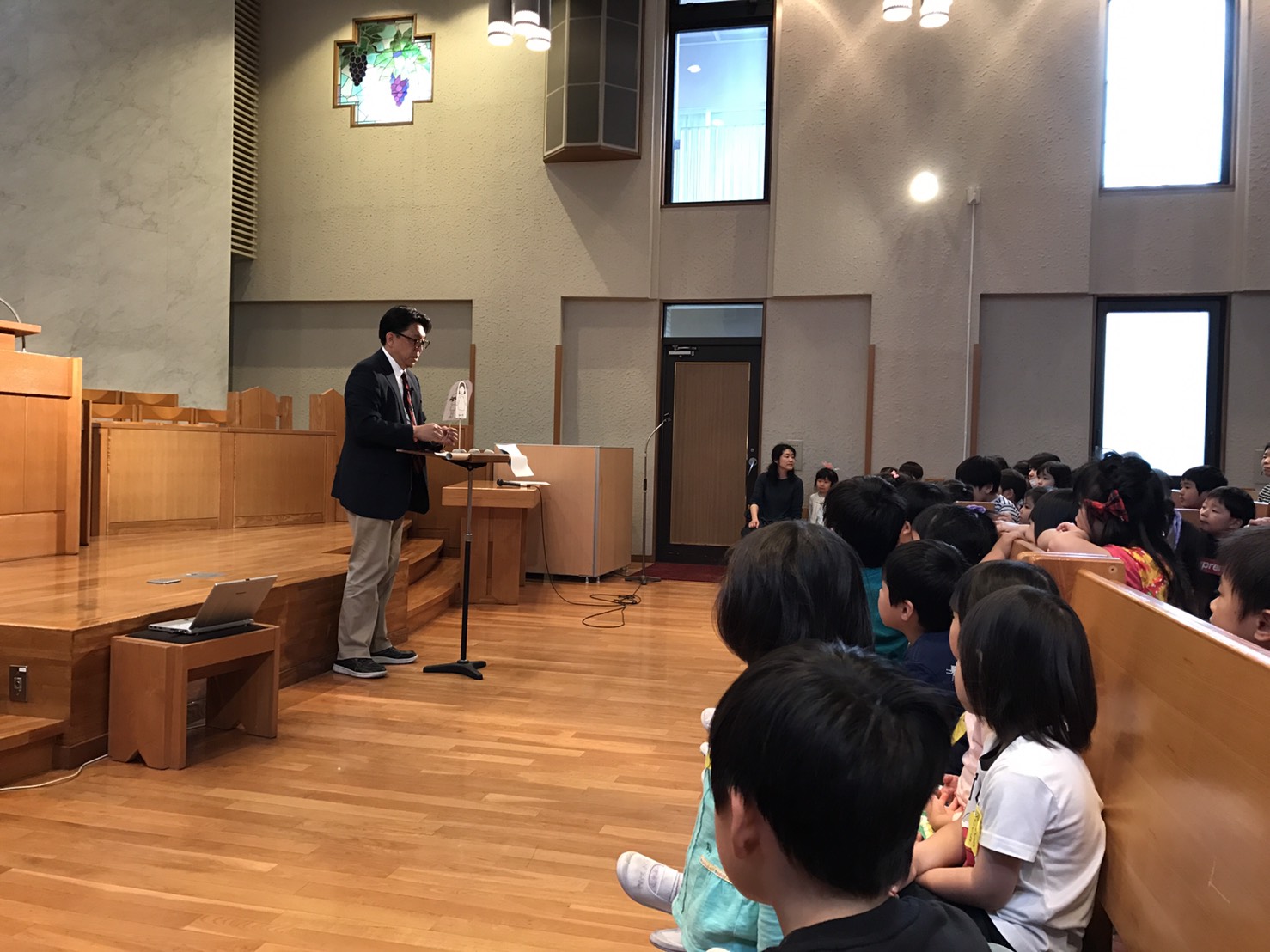 そして水曜礼拝に参加し、賛美歌を歌ったり聖書のお話を聞きました。