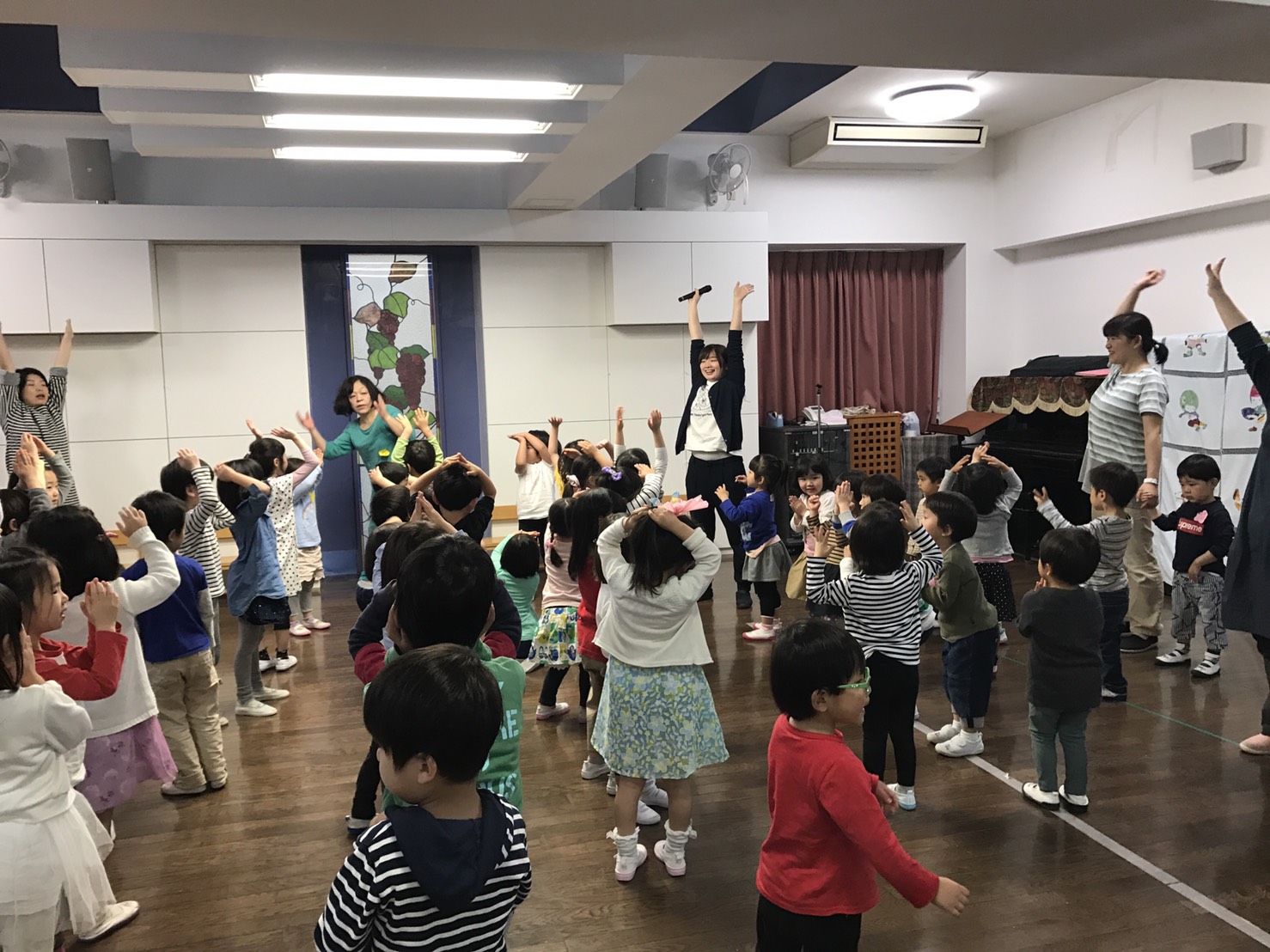 体操でたけのこ体操とダンケルクの鐘を踊りましたね。元気いっぱい楽しそうに踊る姿が見られました。