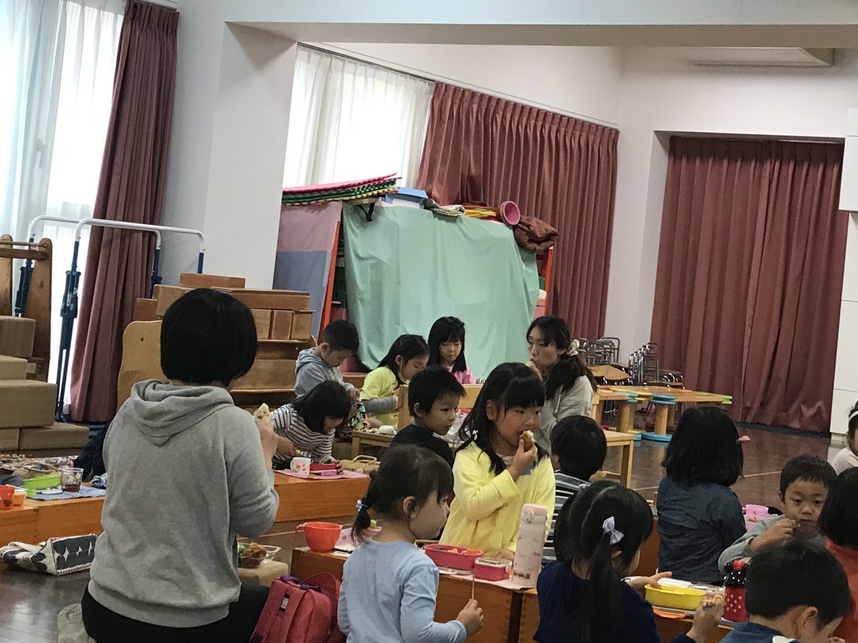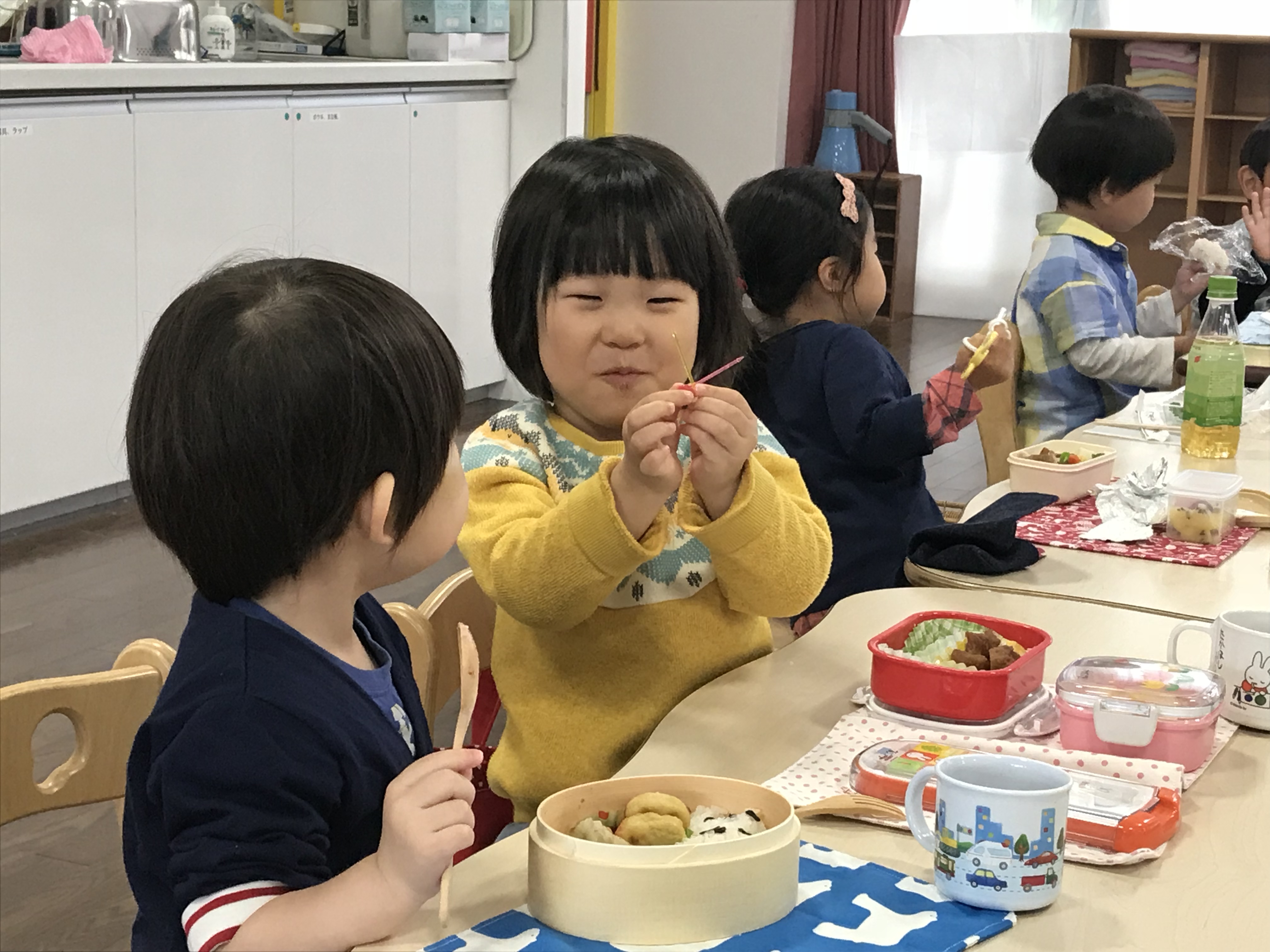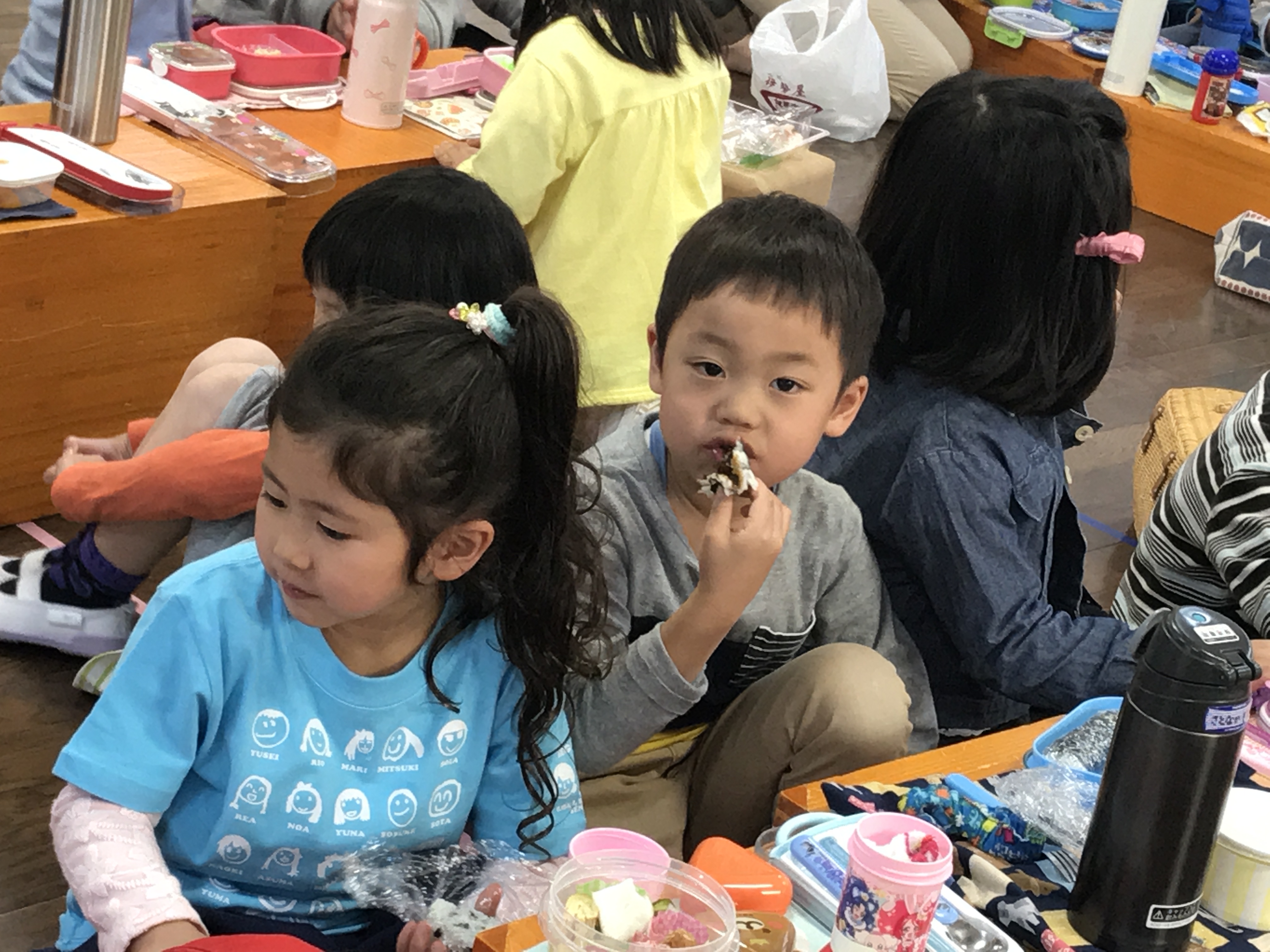 ゆり組のお友だちにとっては、初めて皆でお弁当を食べたので…『本当の遠足みたいだね』嬉しそうな声が聞こえてきました。