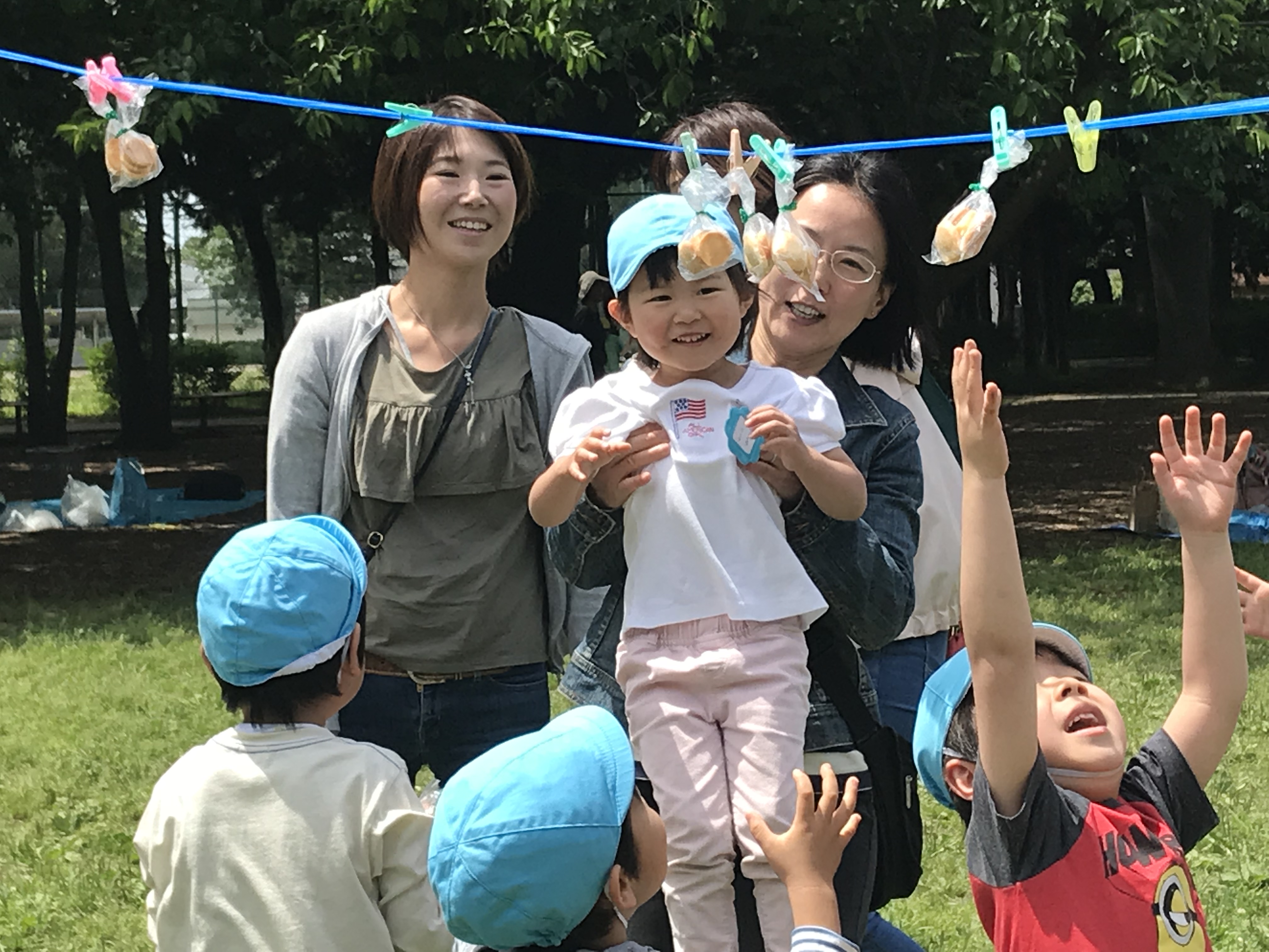 おうちの方々とお友だちとゆっくりお弁当を楽しんだ後は、クッキー取りゲームをして、そのおやつをいただきました。
