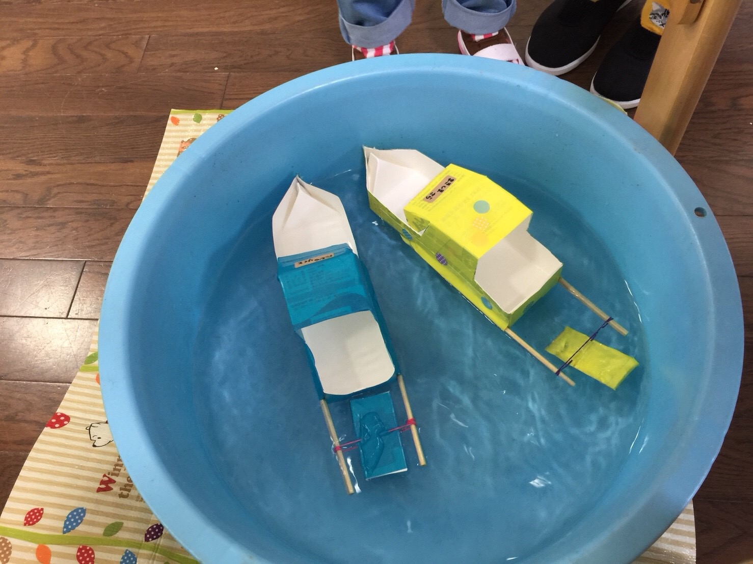 今日のもも組さんでは、お風呂で遊べる「牛乳パック☆プロペラ船」の工作をしました!プロペラを手でくるくると回し、手を離すと・・・水面を進みます!!プロペラを逆に回すと後ろ向きに進み、壁にぶつかるとぐるっと向きを変えたり、色々な発見ができたらいいですね!