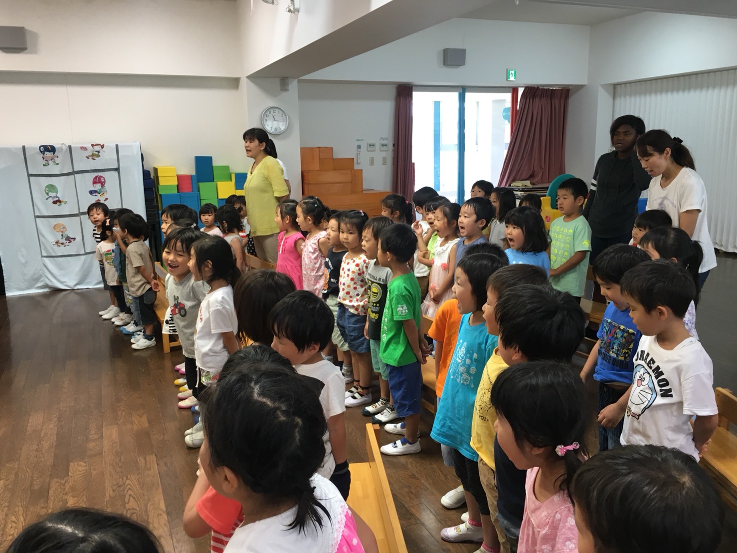 おやつはゼリーを食べて、大型絵本を読みました。これから長い夏休みですが、体調に気をつけて、また幼稚園で会えるのを楽しみにしていますね。