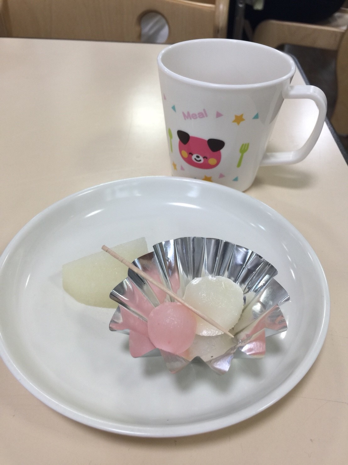 今日の自由遊びでは、玉入れの玉を出して遊べるようにしました。両手いっぱい玉を集めて、かごにあっという間に入れたお友だち、玉の入ったかごに入ってお風呂に入っているお友だち、微笑ましく思いました。お礼拝は、めぐみ幼稚園の先生が聖書から迷子のひつじのお話をしてくださり、もも組さんが静かにお椅子に座ってお話を聞く姿勢に驚いていましたね。リトミックは、とんぼになって、腕を伸ばし、飛ぶように歩き、どうぶつ体操をして、かけっこのゴールをきって、おやつの手作りお月見だんごと梨を食べ美味しかったですね。
