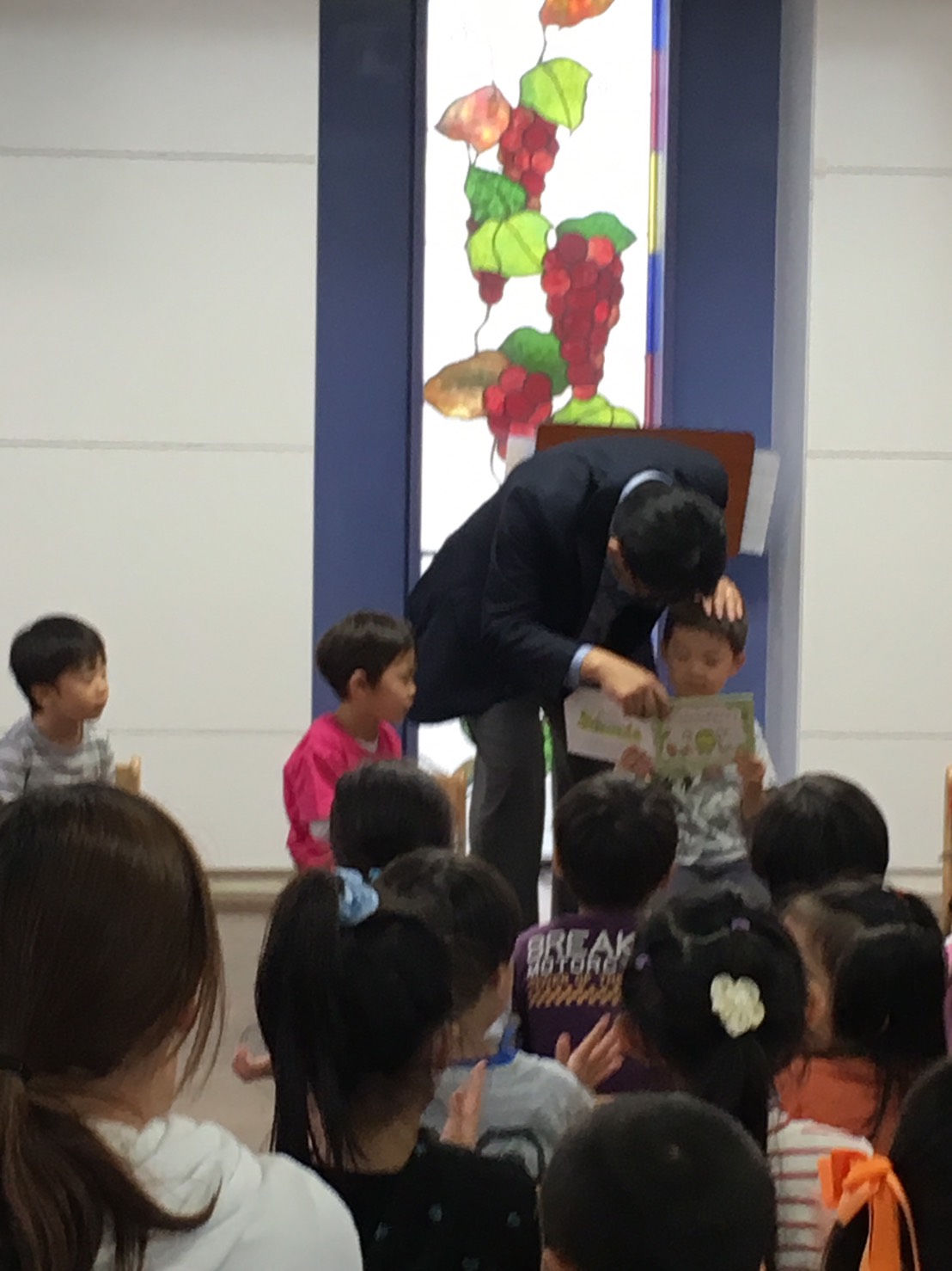 園長先生から、お誕生日の絵本を頂いて、嬉しそうなお友だち。