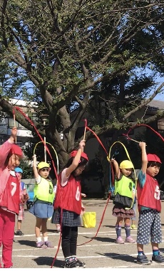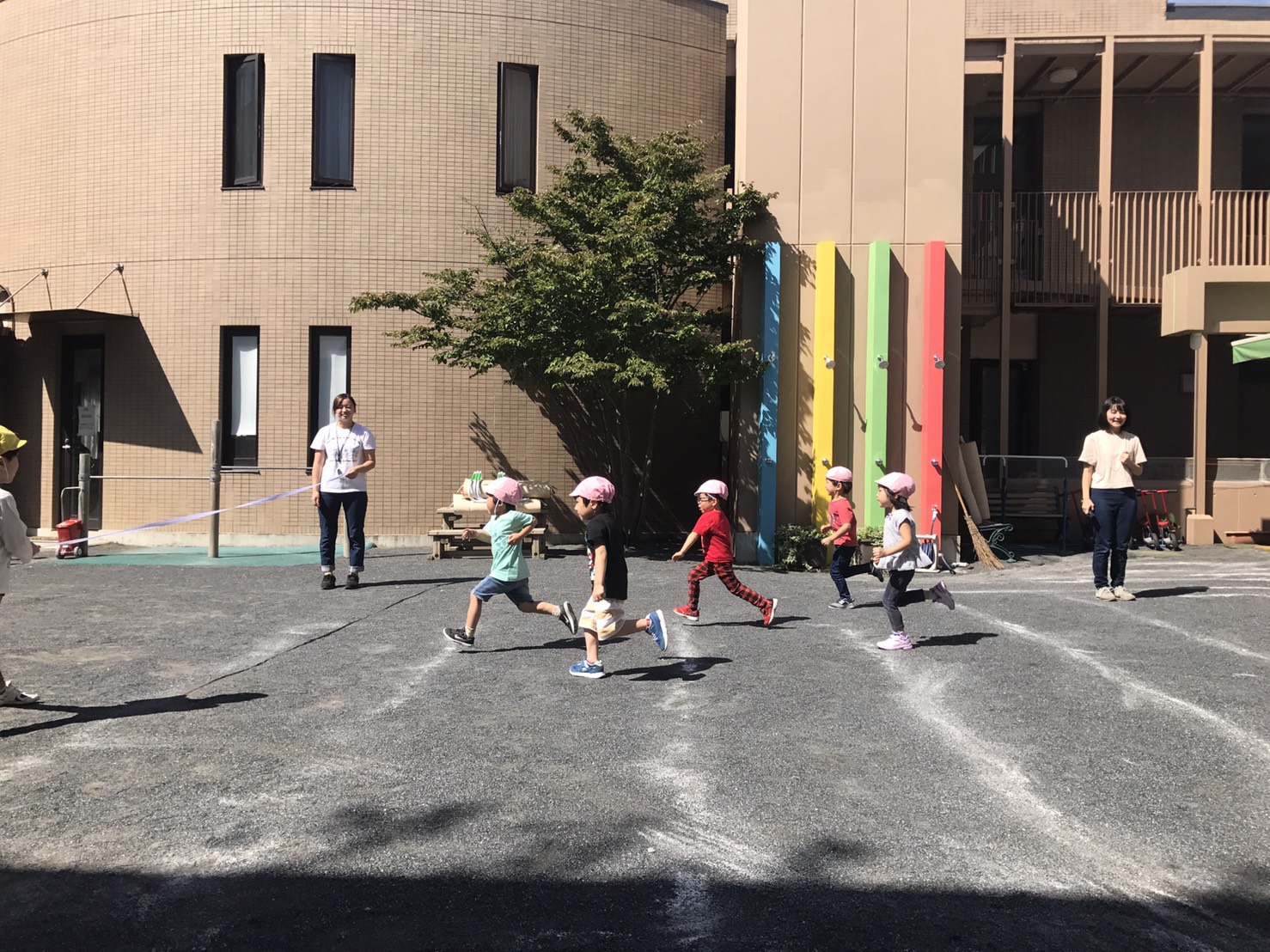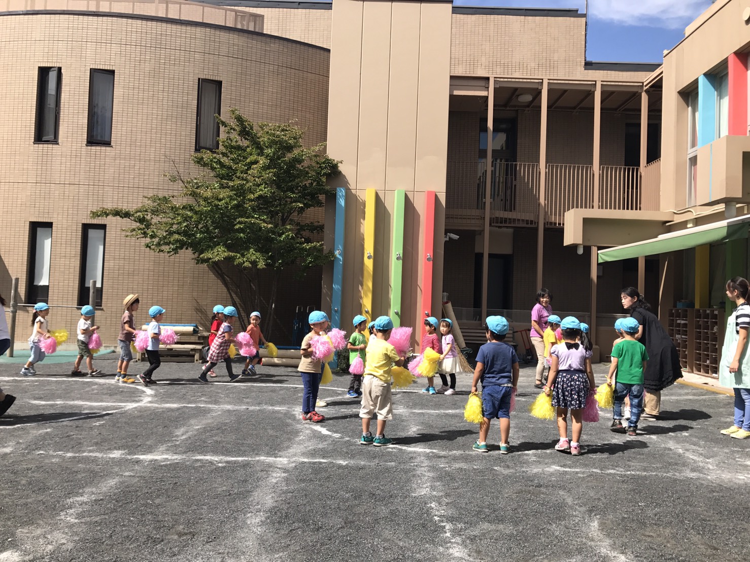 今日はとてもいいお天気になりました。きれいな青空の下で、運動会の練習をしました。